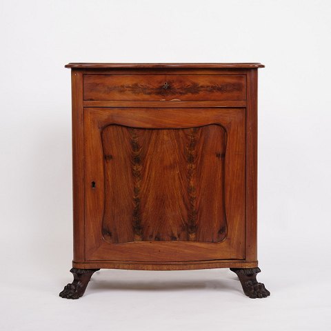 Antikt vitrineskab i barokstil fra ca. 1900. Udført i nøddetræ med glaslåge og sprosser. Elegant hjørneskab med klassisk udtryk.