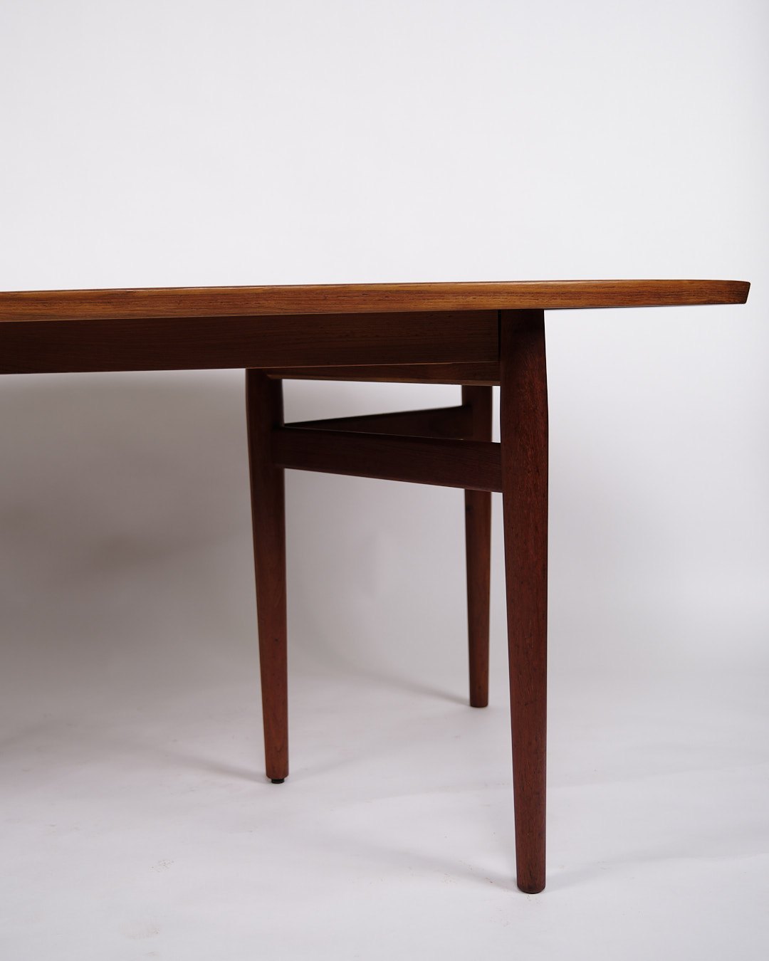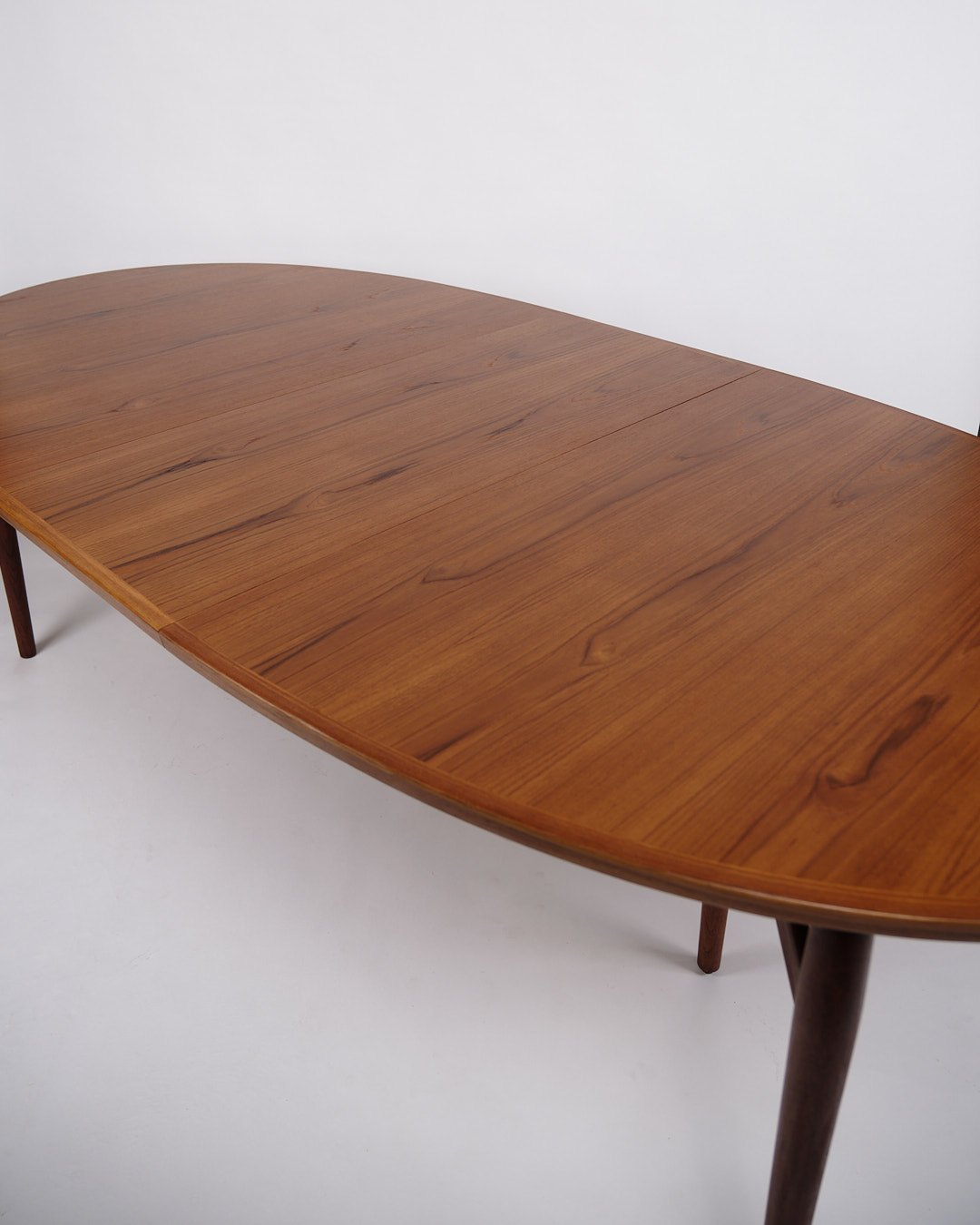 Stort ovalt spisebord designet af Arne Vodder og produceret af Sibast Møbelfabrik i 1960’erne. Bordet er udført i teaktræ og der lavet 2 tillægsplader á 50cm som følger med til bordet.