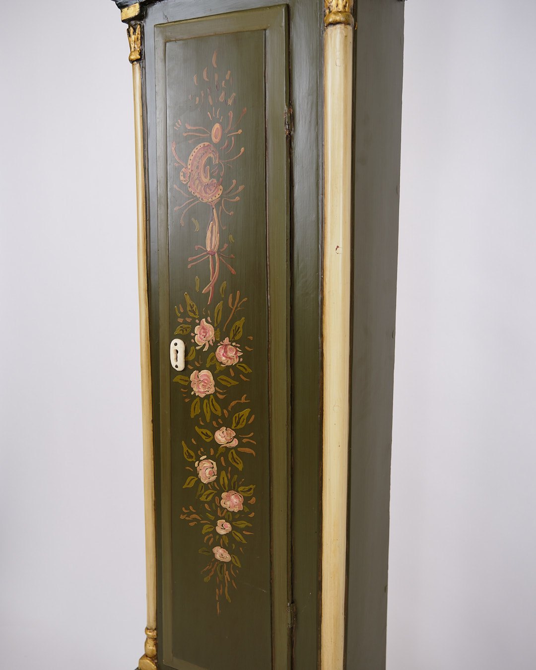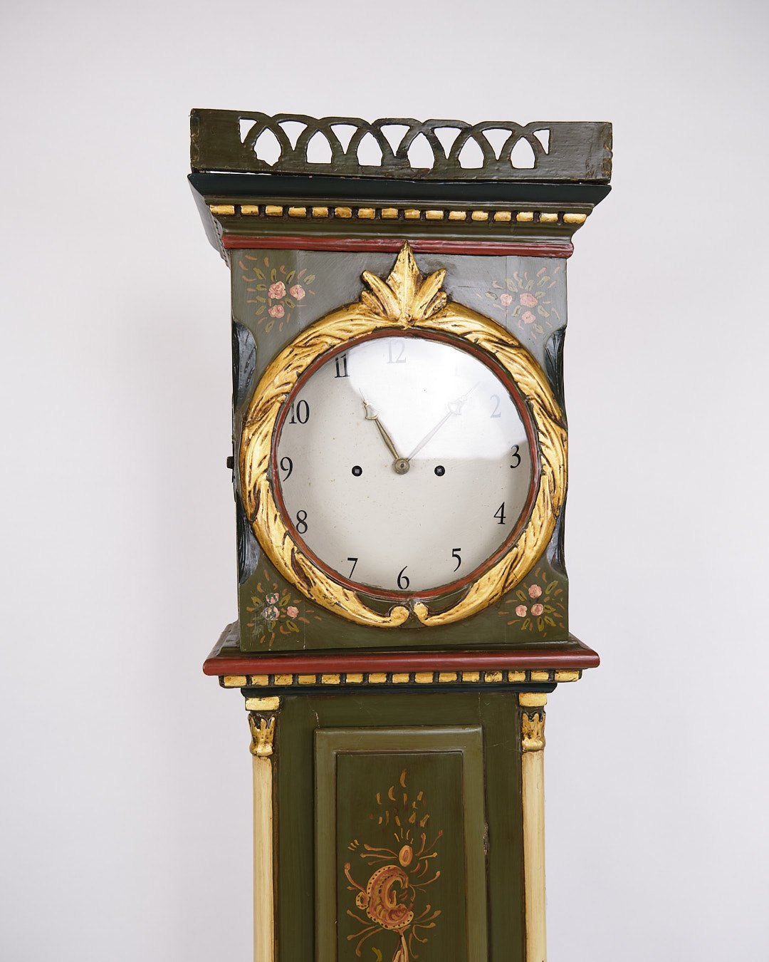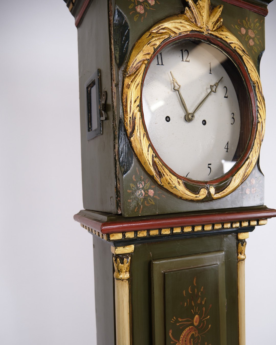 Antikt bornholmerur / standerur fra 1840’erne. Bemalet med håndmalet dekoration.