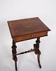 Antique side table in hand-polished mahogany from the 1880s. With drawer and turned legs.