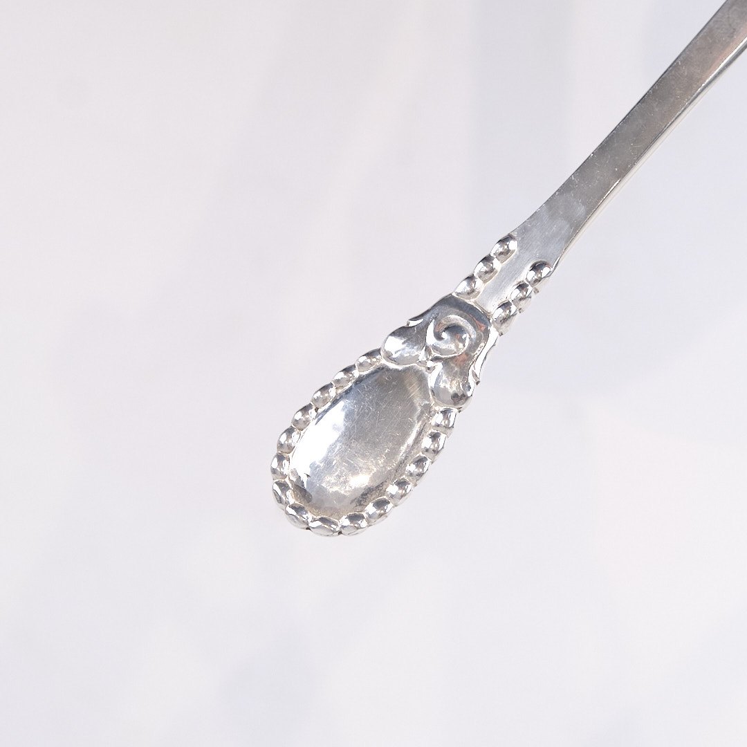 Frokostske/Dessertske i mønster nr. 13 af Evald Nielsen. Tretårnet sølv, stemplet. Klassisk dansk sølvarbejde med elegant design.
