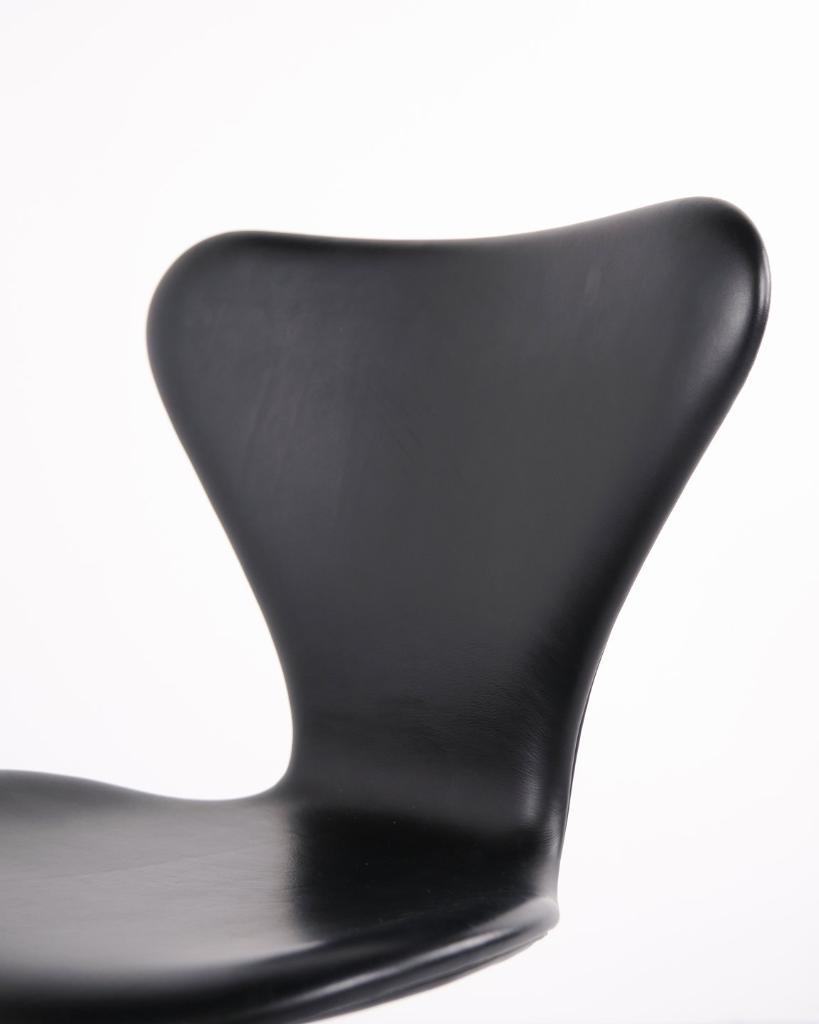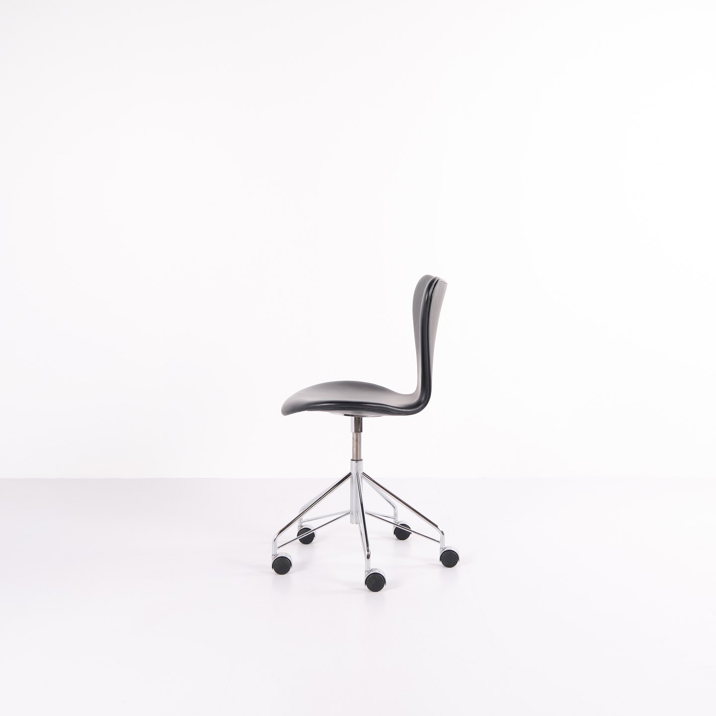 Syver Kontorstol - Model 3117 - Sortlæder - Drejefunktion - Arne Jacobsen - Fritz Hansen