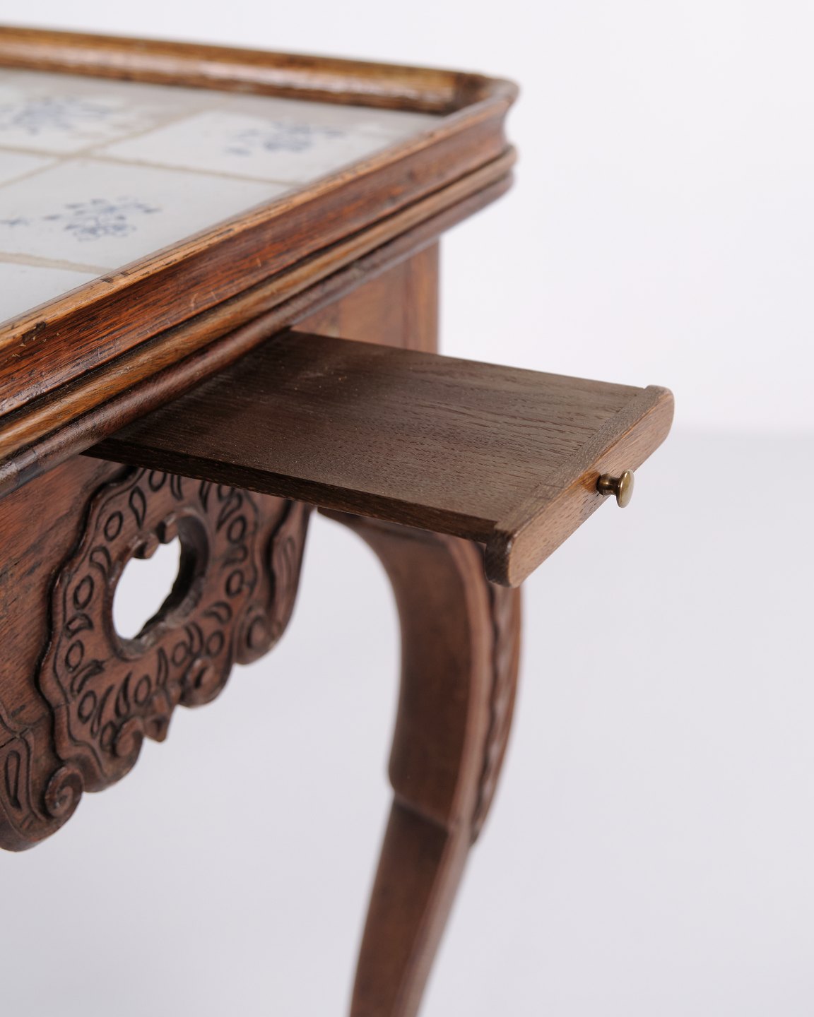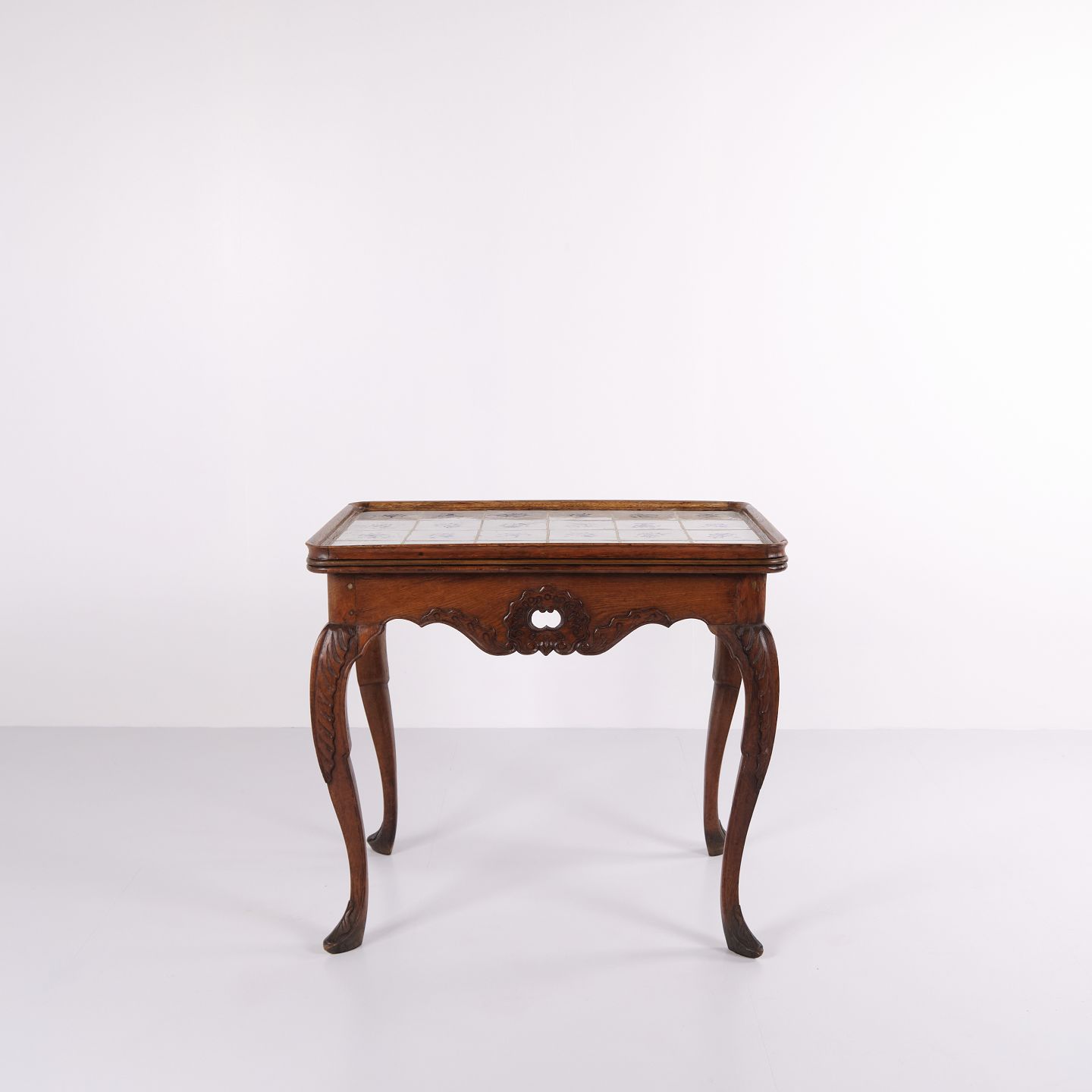 Kontakt os vedrørende prisAntikt Flisebord - Patineret Egetræ - Rokoko Stil - Hollandske fliser - 1780