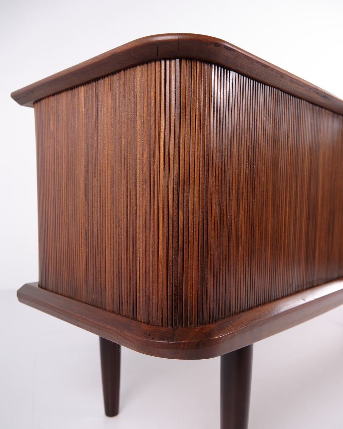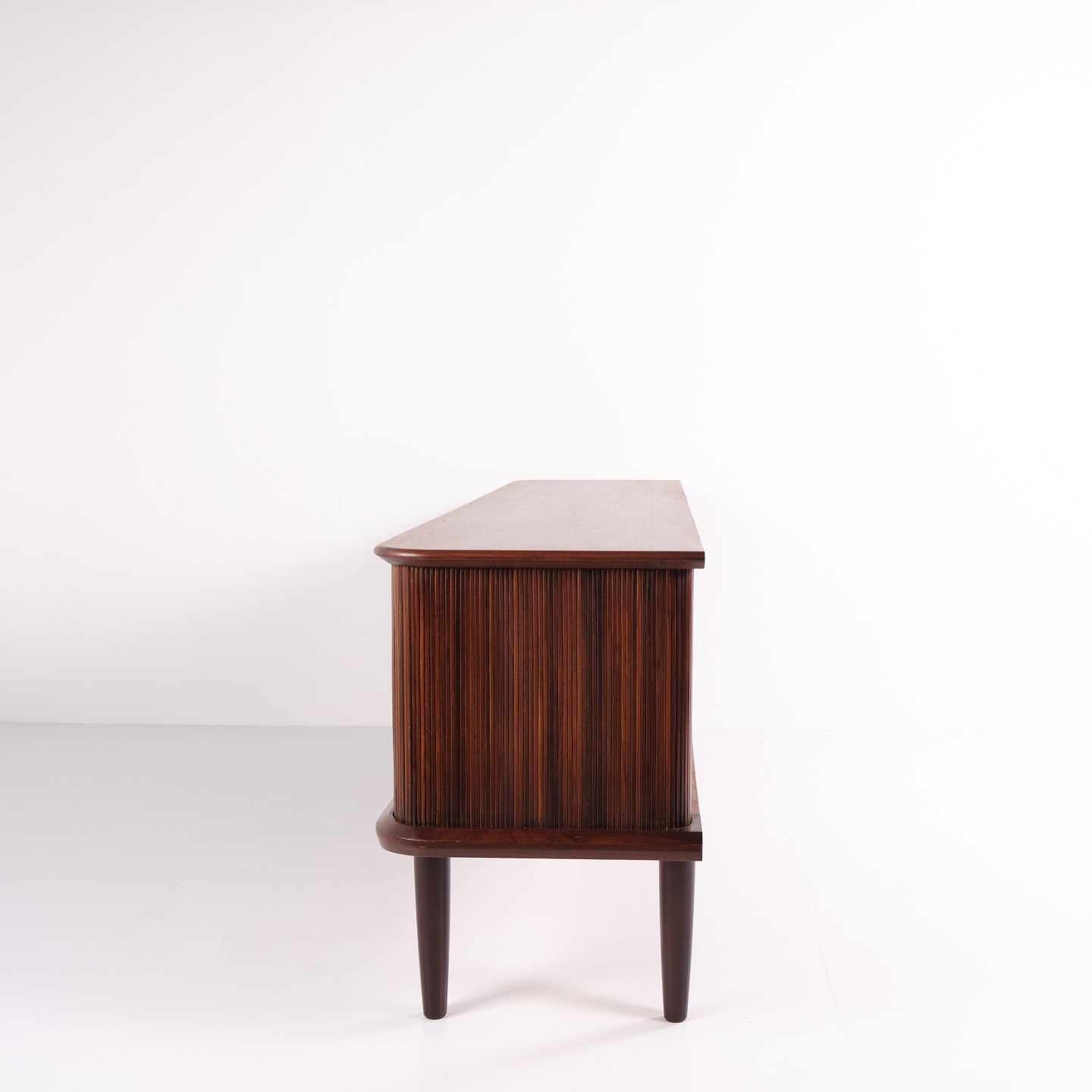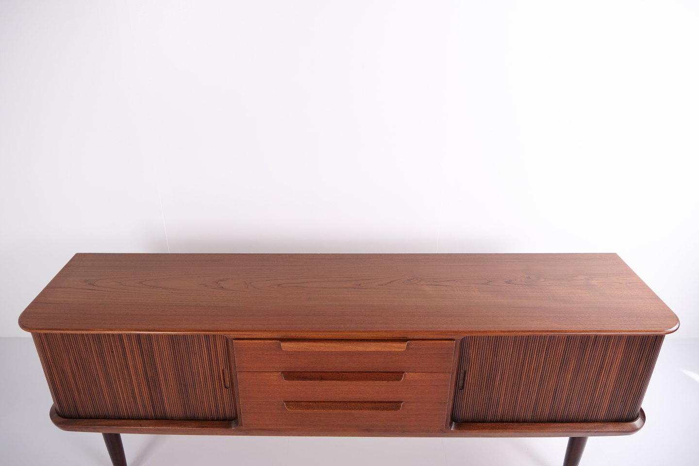 Kontakt os vedrørende prisSkænk fra 1960’erne, udført i teaktræ med tre centrale skuffer og jalousilåger i siderne.