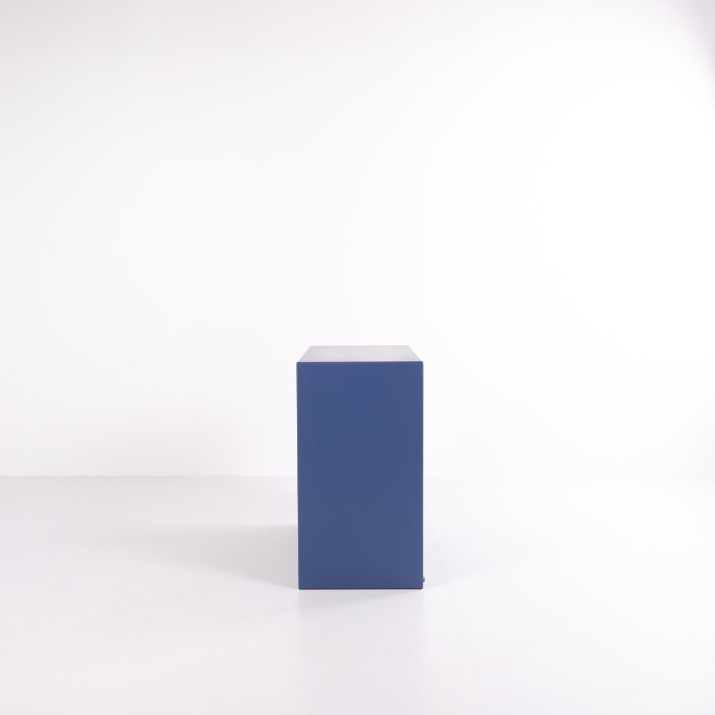 Montana reol i blå. Udstyret med tre åbne hylder, ideel til opbevaring eller udstilling i stue, kontor eller entré. Klassisk Montana-modul med enkel opbygning og høj funktionalitet.