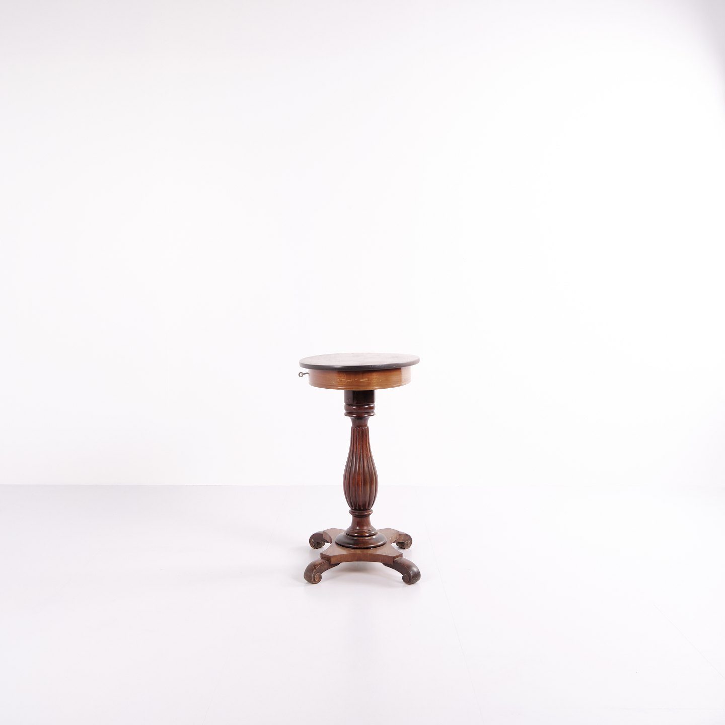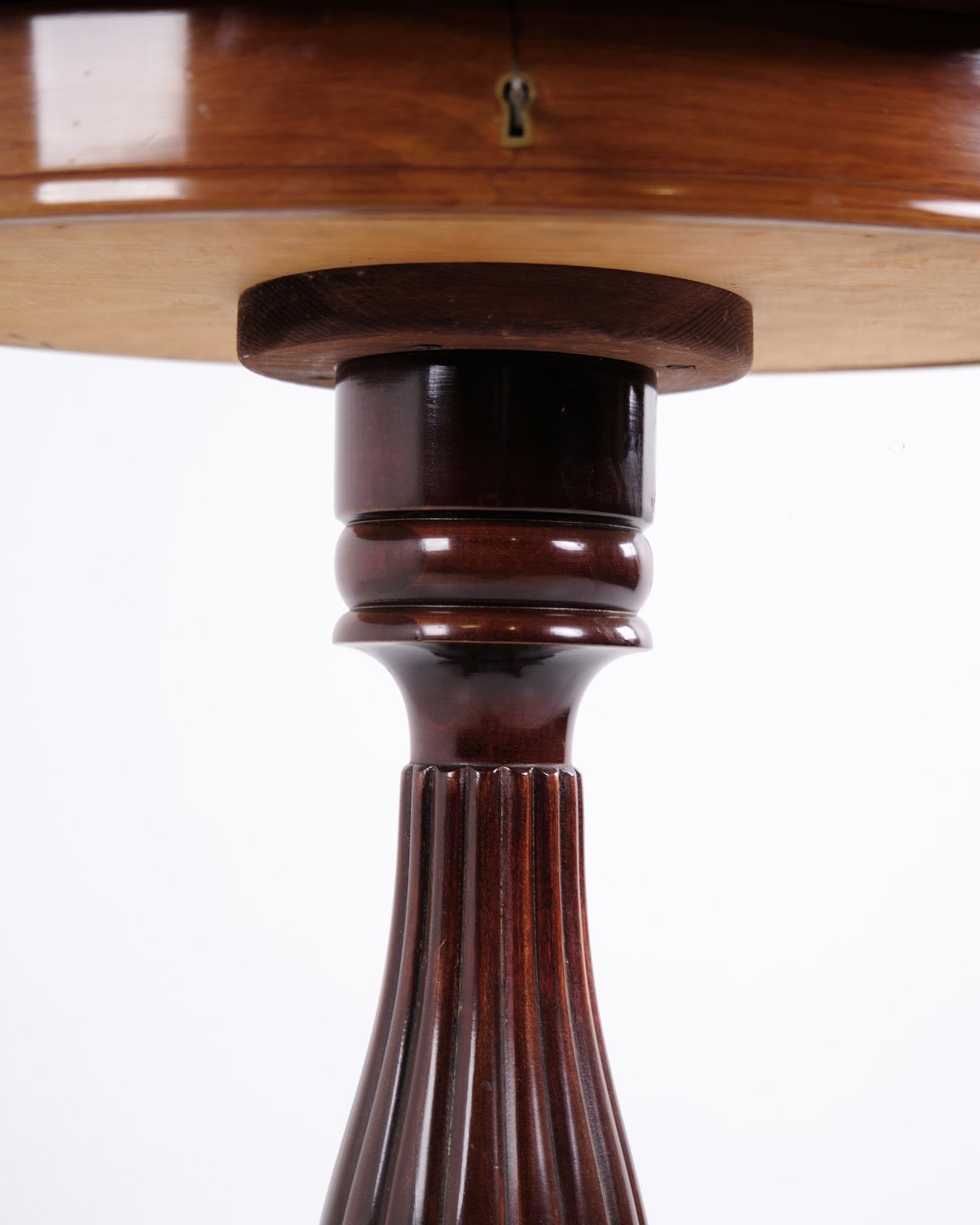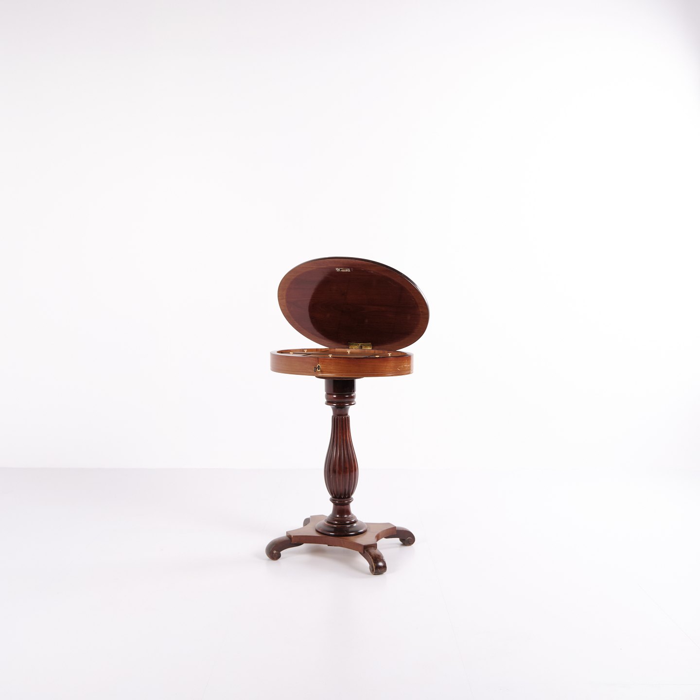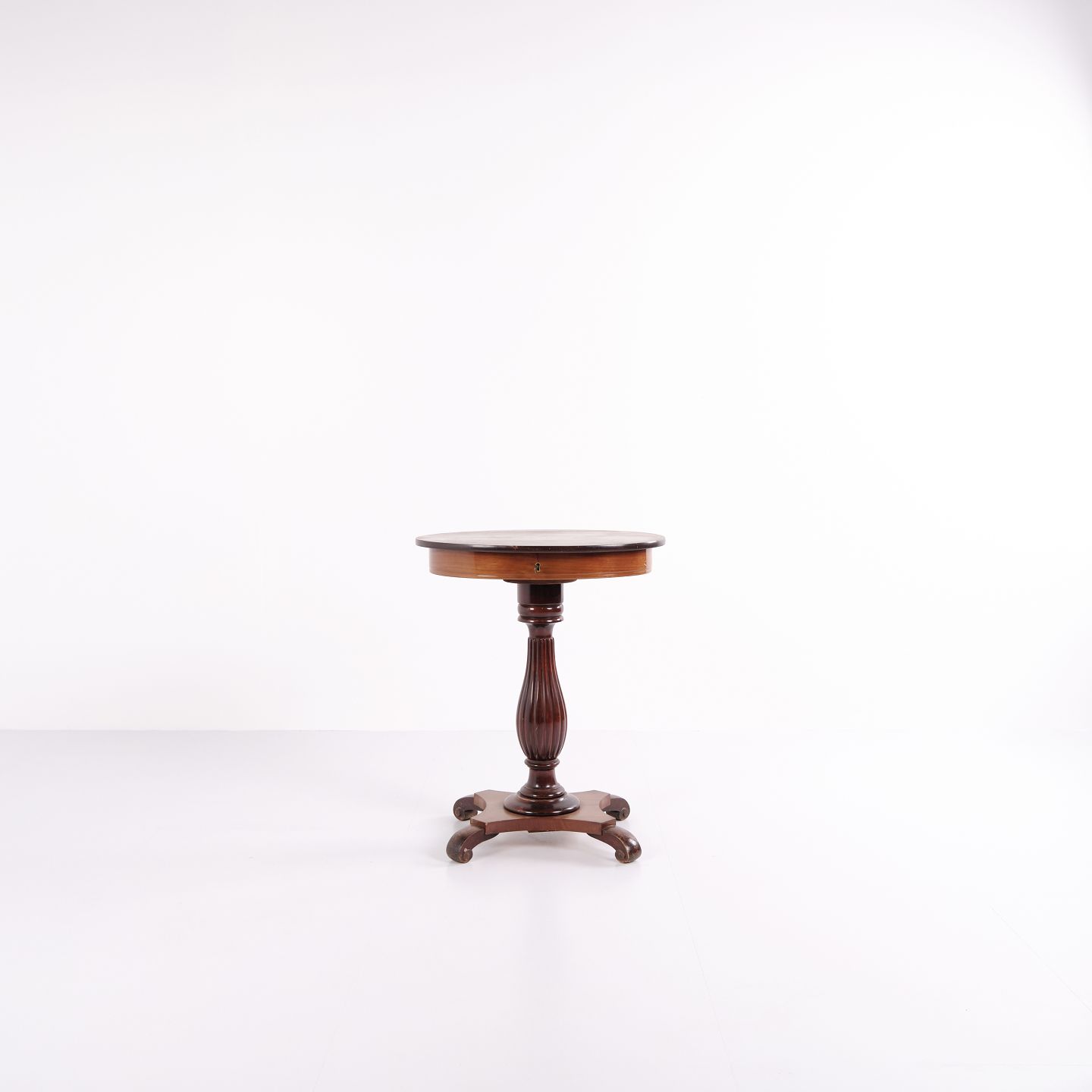 Sidebord eller smykkebord fra ca. 1890, udført i mahogni og håndpoleret for en dyb, varm glans. Klassisk antikt møbel med fine detaljer, velegnet som dekorativt bord i entré, stue eller soveværelse.