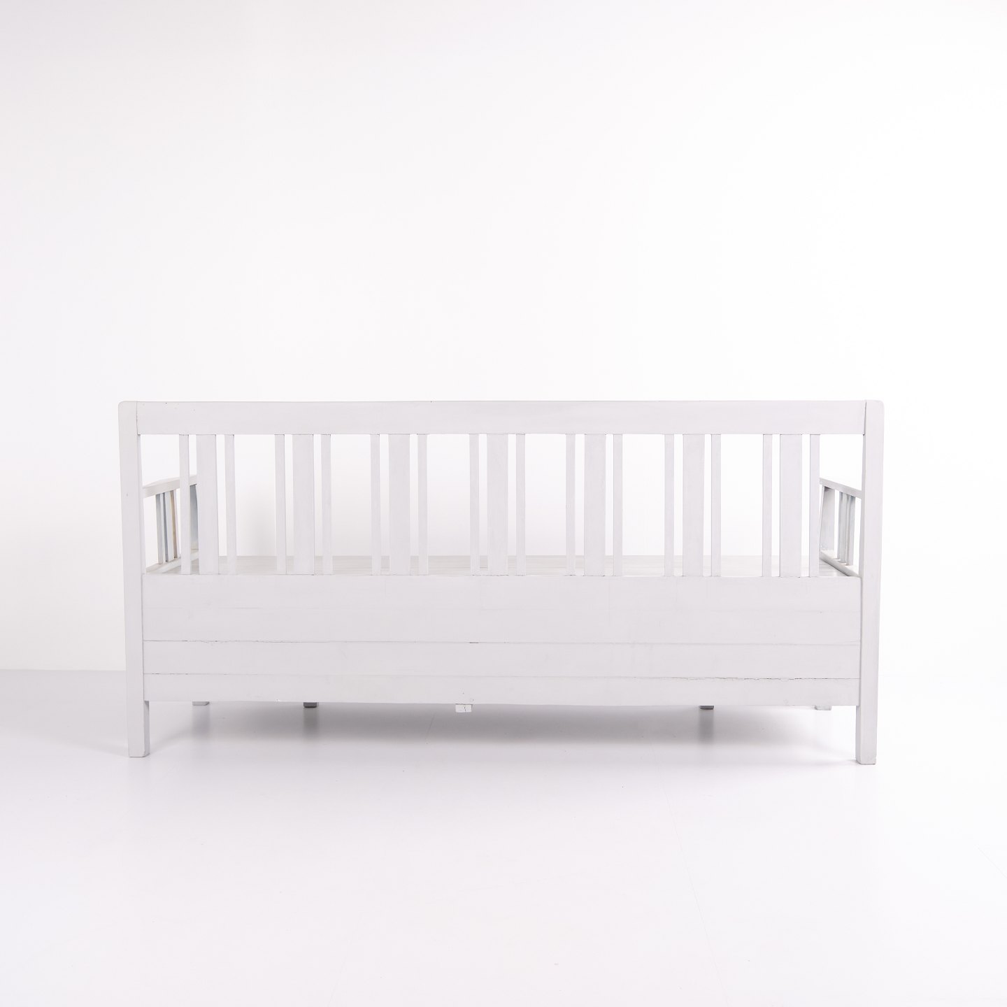 Svensk slagbænk - Gråmalet - Antik - bemalet fyrretræ - År 1860'erne