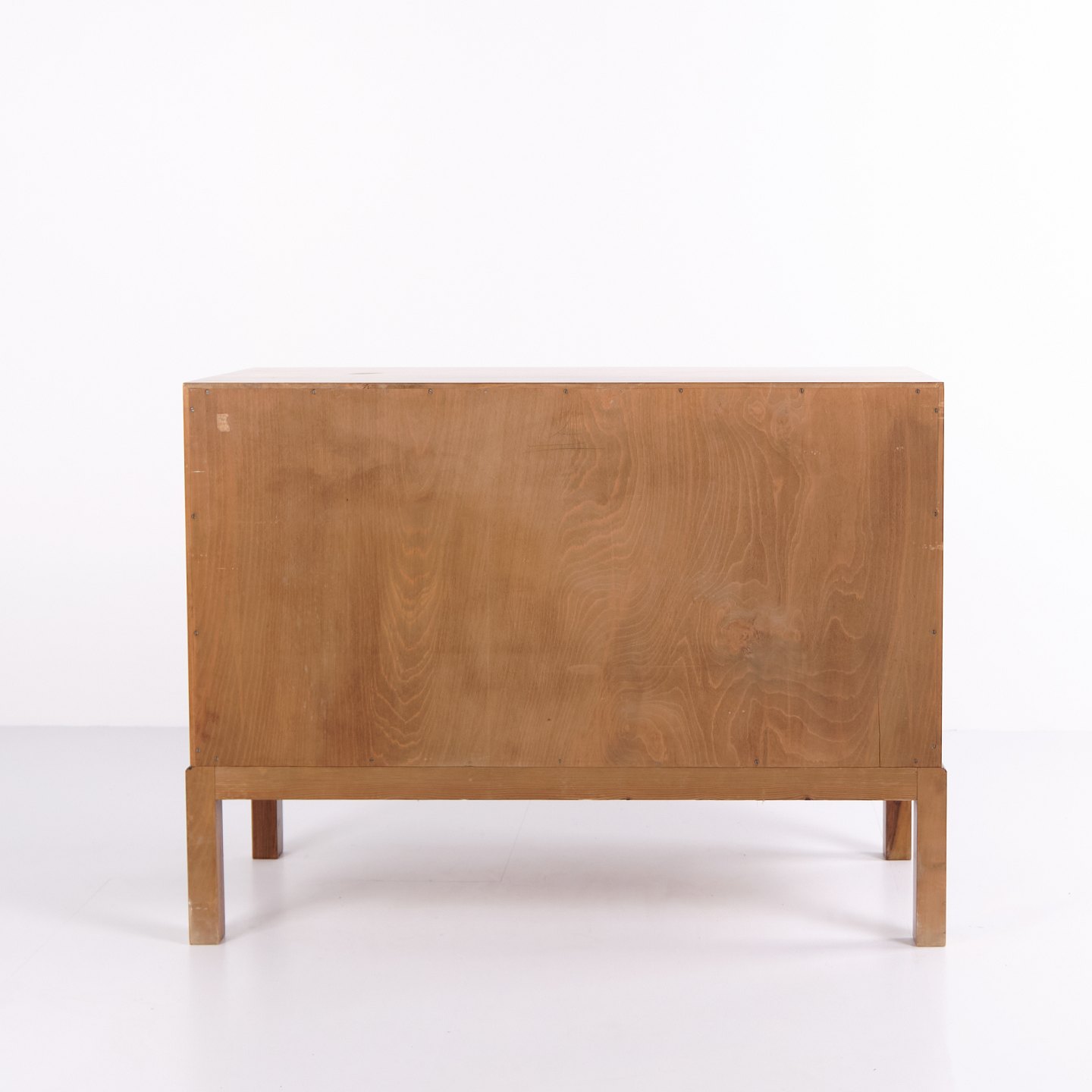 Kommode fra 1940’erne designet af Ole Wanscher. Udført i valnødfinér med messinggreb og karakteristiske detaljer fra perioden. Et tidligt eksempel på Wanschers elegante møbelkunst og brug af eksklusive materialer.