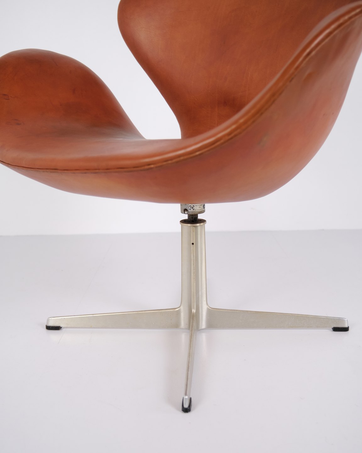 Svanen model 3320 af Arne Jacobsen for Fritz Hansen i originalt cognac læder fra 1960’erne. Ikonisk dansk design.