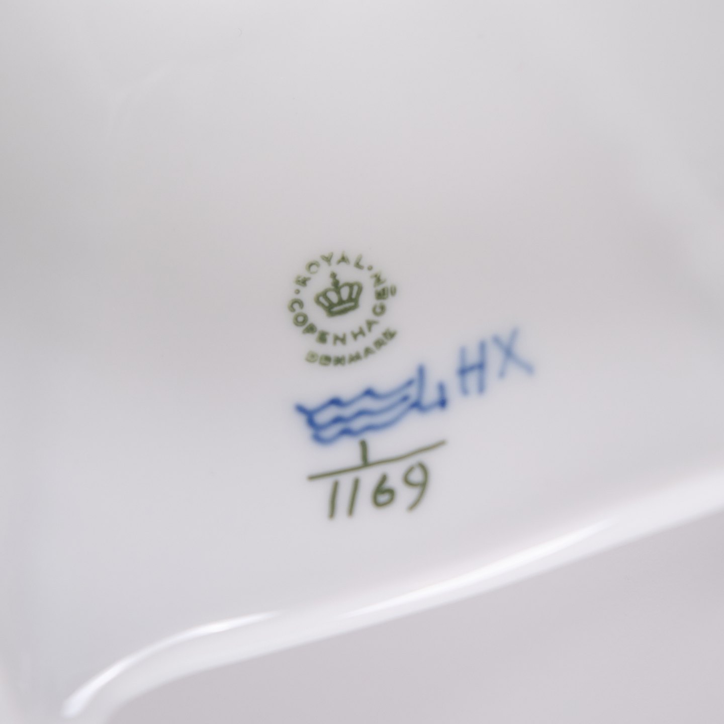 To-armet lysestage i musselmalet helblonde porcelæn, model 1169, produceret af Royal Copenhagen. Lysestagen er udført i håndmalet porcelæn med det klassiske helblonde-mønster, kendetegnet ved gennemgående gennembrudt bort og detaljeret underglasurdekoration. Modellen er produceret som 1. sortering og indgår i Royal Copenhagens traditionelle servicenproduktion.