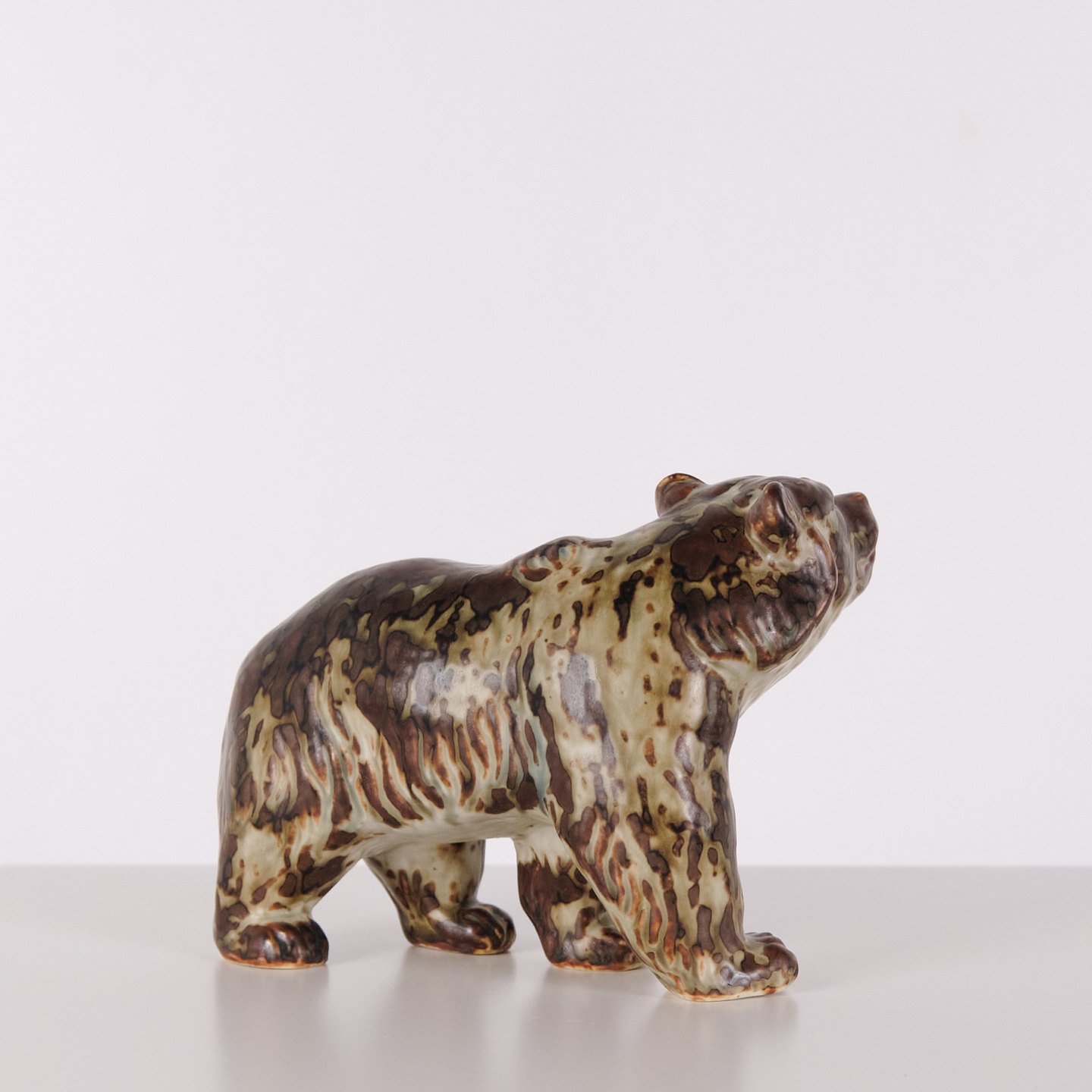 Keramikfigur med motiv af bjørn, model 20155, designet af Knud Kyhn for Royal Copenhagen. Figuren er udført i stentøj og produceret hos Royal Copenhagen omkring 1960. Modellen er en del af Kyhns omfattende arbejde med dyrefigurer, kendetegnet ved tydelig form og fokus på dyrets kropsvolumen. Et klassisk eksempel på dansk keramisk design fra midten af det 20. århundrede.