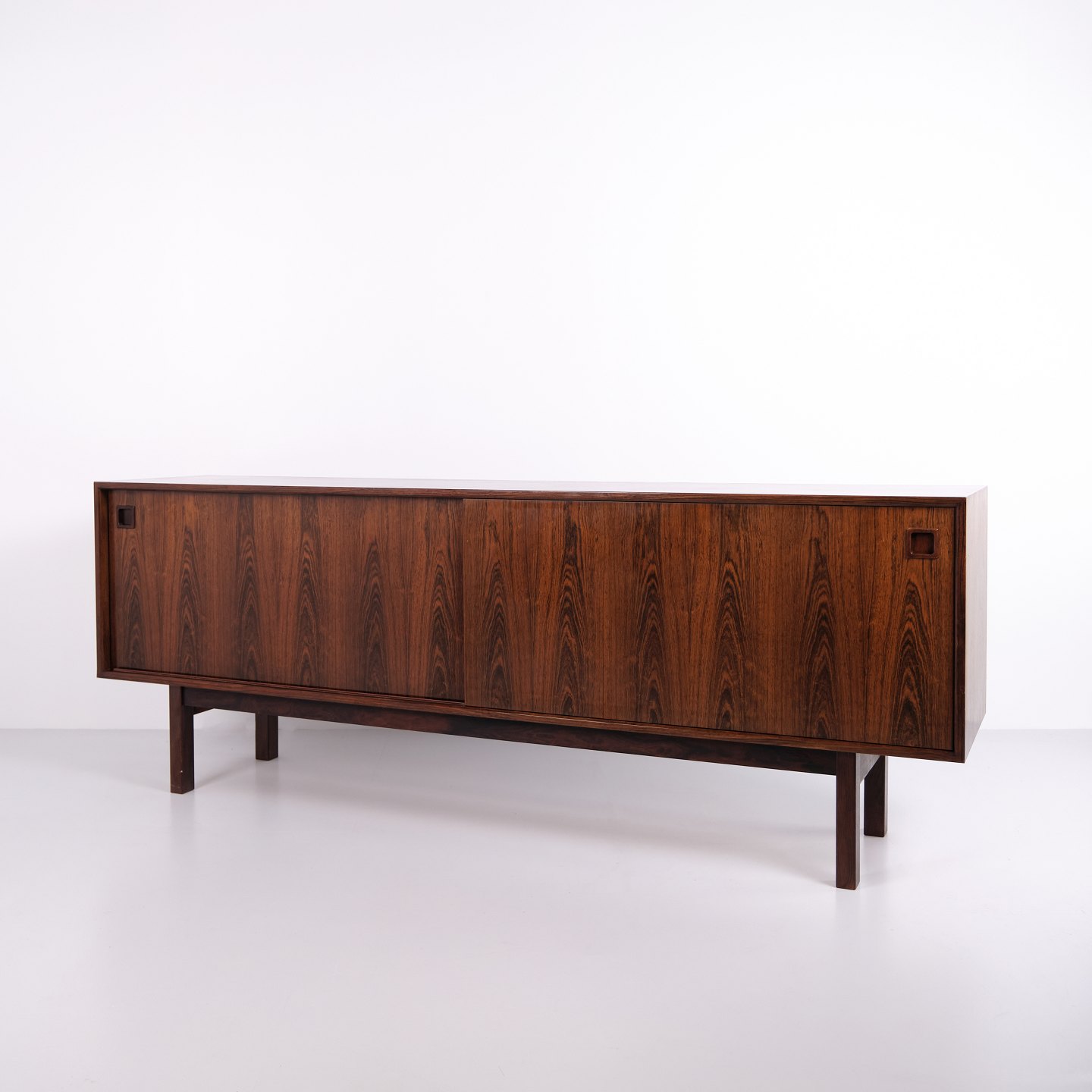 Skænk, model 21, designet af Gunni Omann og fremstillet hos Omann Jun Møbelfabrik i Danmark i 1960’erne. Møblet er udført i palisander og er et klassisk eksempel på dansk møbeldesign med fokus på funktionalitet, rene linjer og præcise snedkerdetaljer.