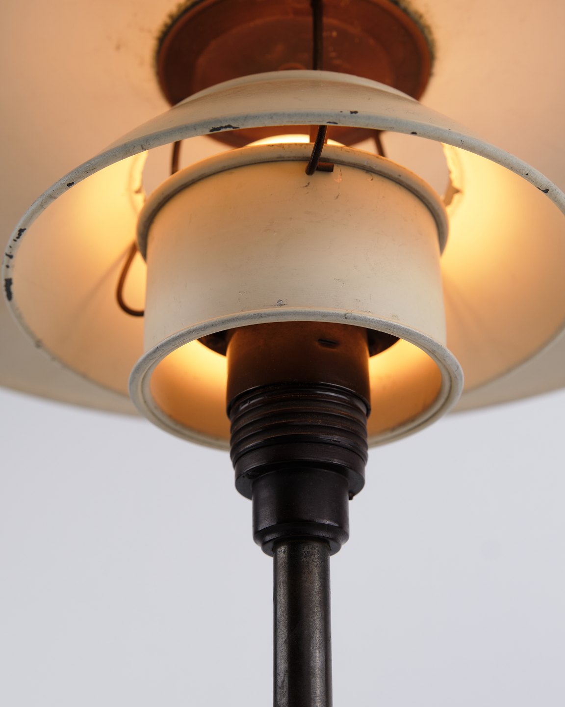 PH 3,5/2,5 bordlampe designet af Poul Henningsen og fremstillet af Louis Poulsen i 1930’erne. Lampen er udført med hvidmalede metalskærme, som sikrer et blødt og jævnt fordelt lys.