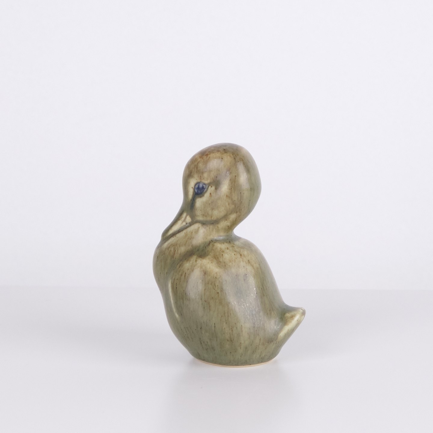 Andefigur af Knud Basse udført i glaseret keramik. Figuren er fremstillet i Danmark i 1960’erne. Knud Basse er kendt for keramiske dyrefigurer med fugle- og naturmotiver produceret i perioden.
