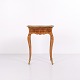 Ein Paar Beistelltische im Neo-Rokoko-Stil aus den 1890er Jahren. Gefertigt aus Rosenholz mit feinen Intarsien, geschwungenen Beinen sowie Details aus Bronze und Messingkante. Die reich verzierte Formensprache und die geschwungenen Linien spiegeln den historischen Stil mit Fokus auf Handwerk und Ornamentik wider.