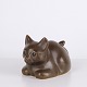 Katzenfigur von Knud Basse als Vase aus braun glasierter Keramik gefertigt.