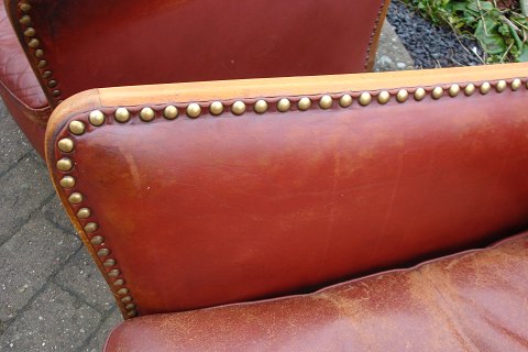 Et par hvilestole fra omkring år 1930 i patineret rødt læder.