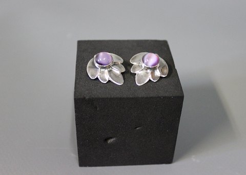 Armbånd, Øreringe samt broche i sterling sølv med lilla sten fra Brd. B.