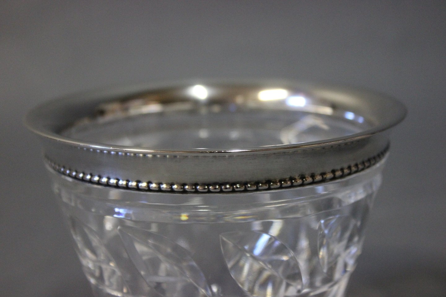 SolgtSkål af bømisk krystal med kant i tretårnet sølv fra 1930erne.