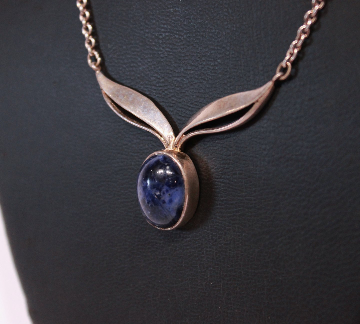 Halskæde i 925 sterling sølv med vedhæng af Lapis Lazuli sten, stemplet Alton.