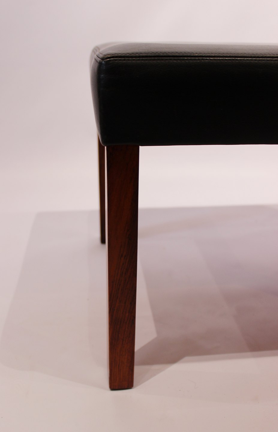 Skammel med ben af palisander og polstret med sort læder af dansk design fra 1960erne. Skamlen er i flot brugt stand.
