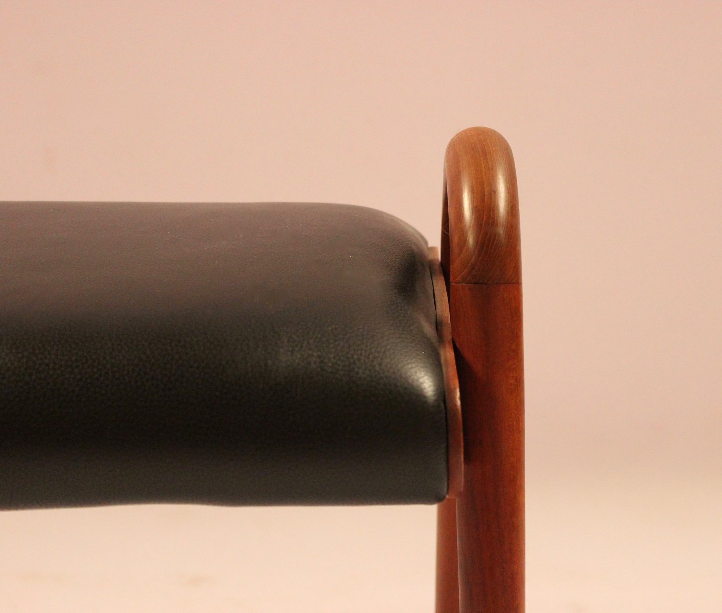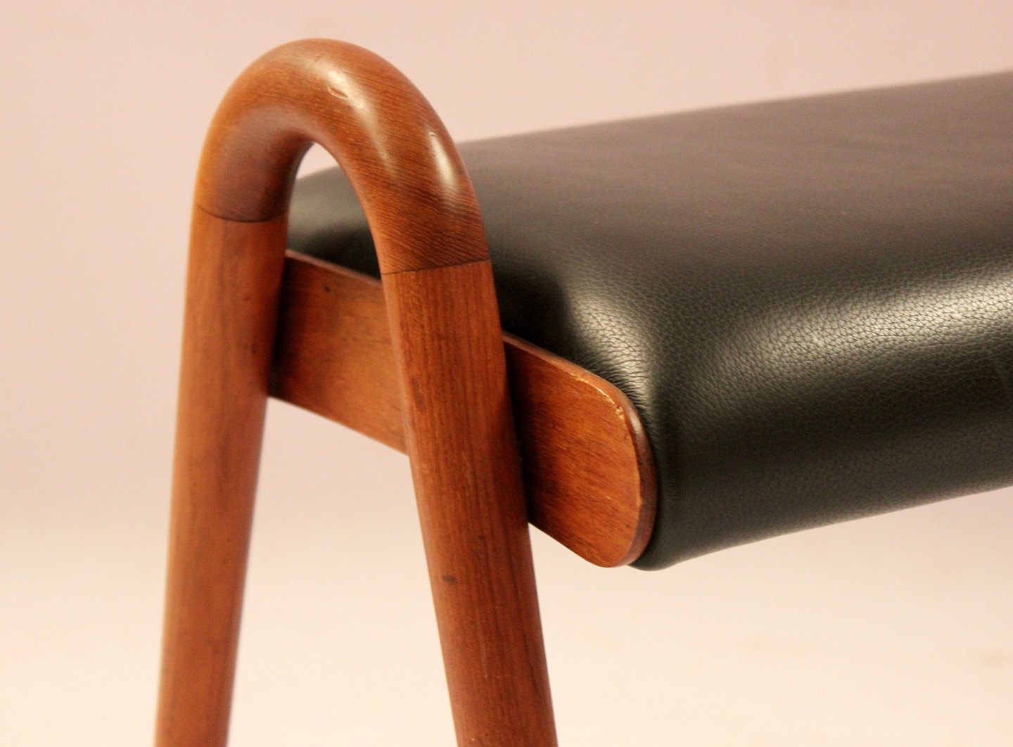 Skammel i teak og sort klassisk læder af Vilhelm Lauritzen fra 1960erne.