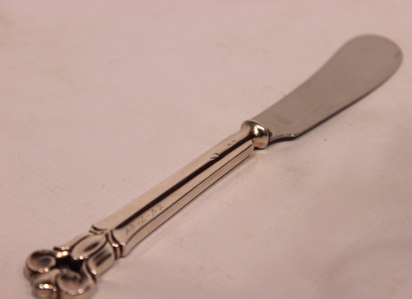 Smørkniv i mønstret Monica fra Cohr af tretårnet sølv.