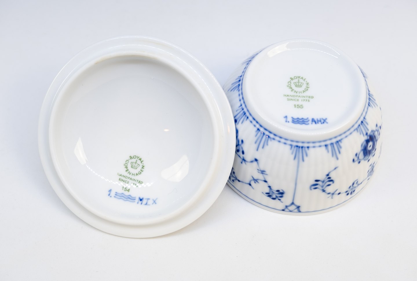 SolgtKgl. musselmalet riflet sukkerskål, nr.: 155, af Royal Copenhagen.