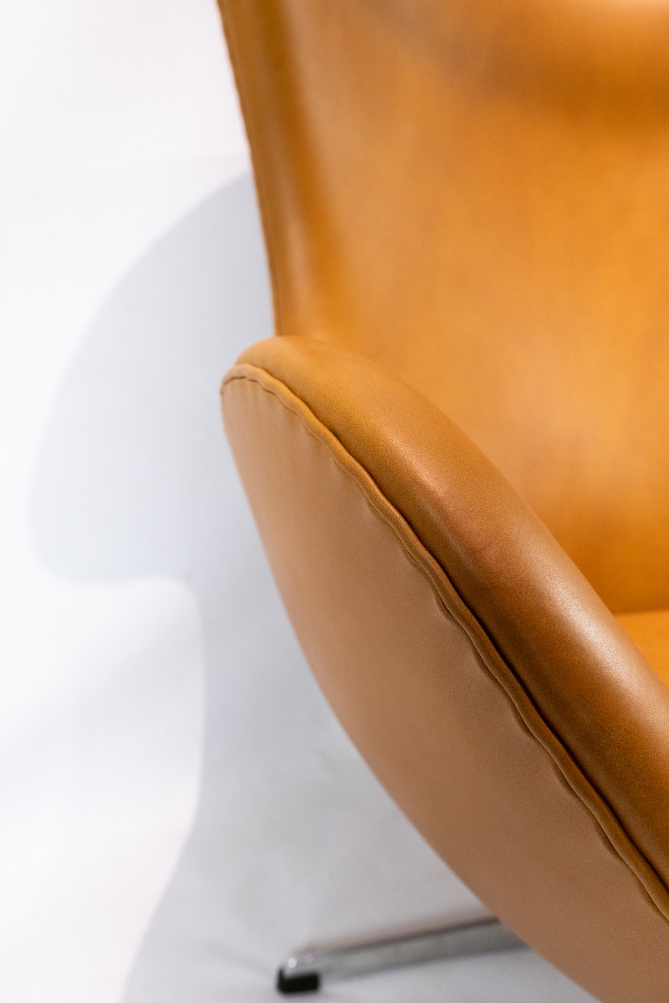 Fremstillet af Fritz Hansen, et anerkendt dansk møbelfirma kendt for sit håndværk og kvalitet, er Ægget skabt med materialer af højeste standard. Stolen er polstret i cognacfarvet klassisk læder, hvilket tilføjer varme og raffinement til sit udseende.