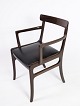 Fremstillet af P. Jeppesen, et anerkendt navn inden for møbelproduktion, er disse armstole omhyggeligt håndlavet med fokus på kvalitet og detaljer. Med deres smukke mahogni og det luksuriøse sorte læder vil disse stole være et stilfuldt og funktionelt tilføjelse til enhver stue, spisestue eller kontor.