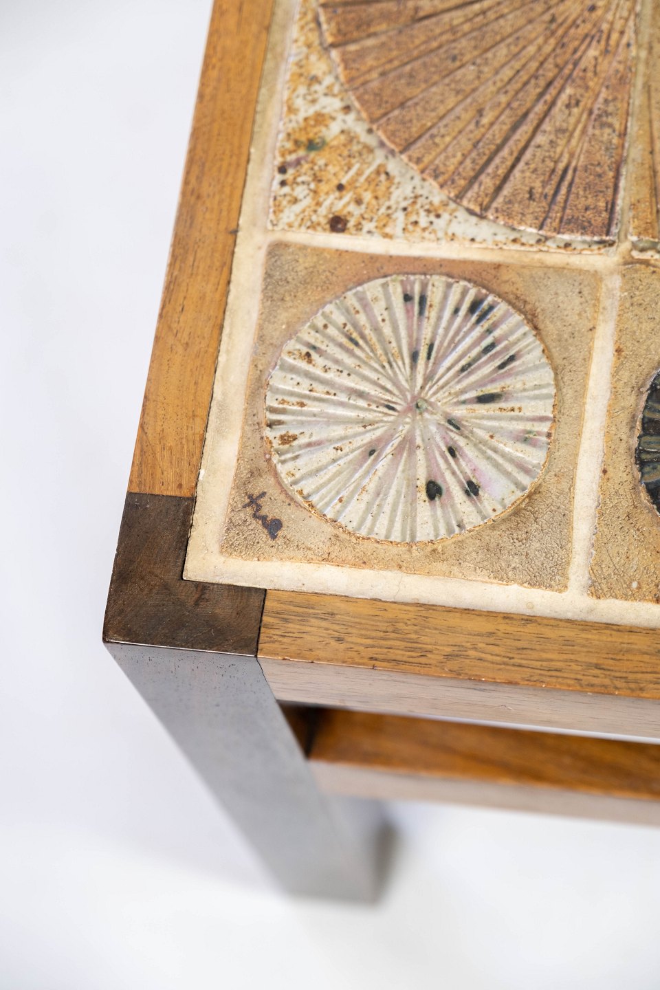 Sofabord af palisander samt keramik klinker designet af Tue Poulsen og fremstillet hos snedker mester Erik Wörtz fra 1960erne.