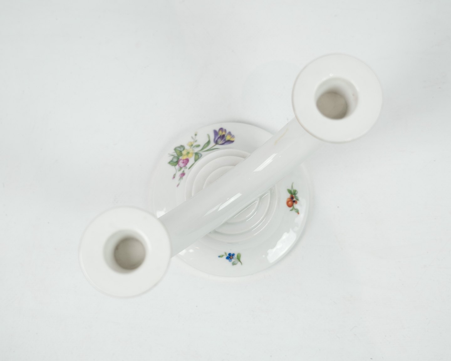 Bing & Grøndahl et par dobbelt lysestager i stellet saksisk blomst nr.235. Fuld intakt og står flot i guldet. 1 sortering