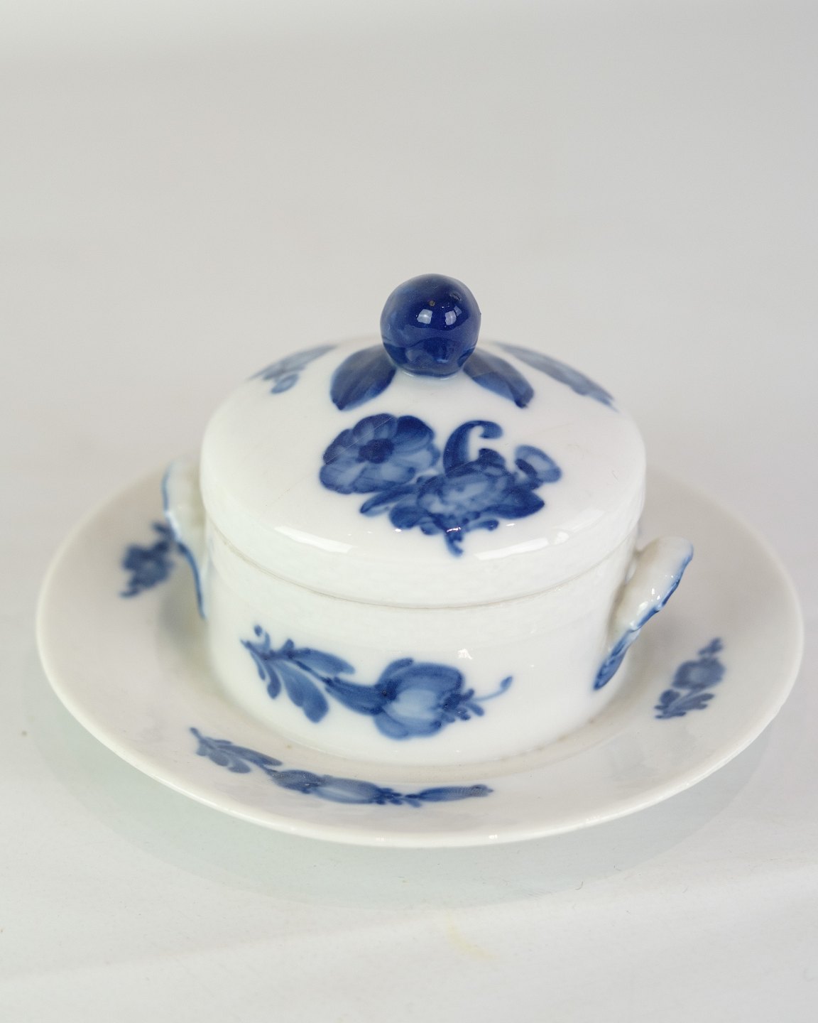 Kongelig smørskål på fast fod med mønstret blå blomst flettet nr. 10/8075. 1 sortering.