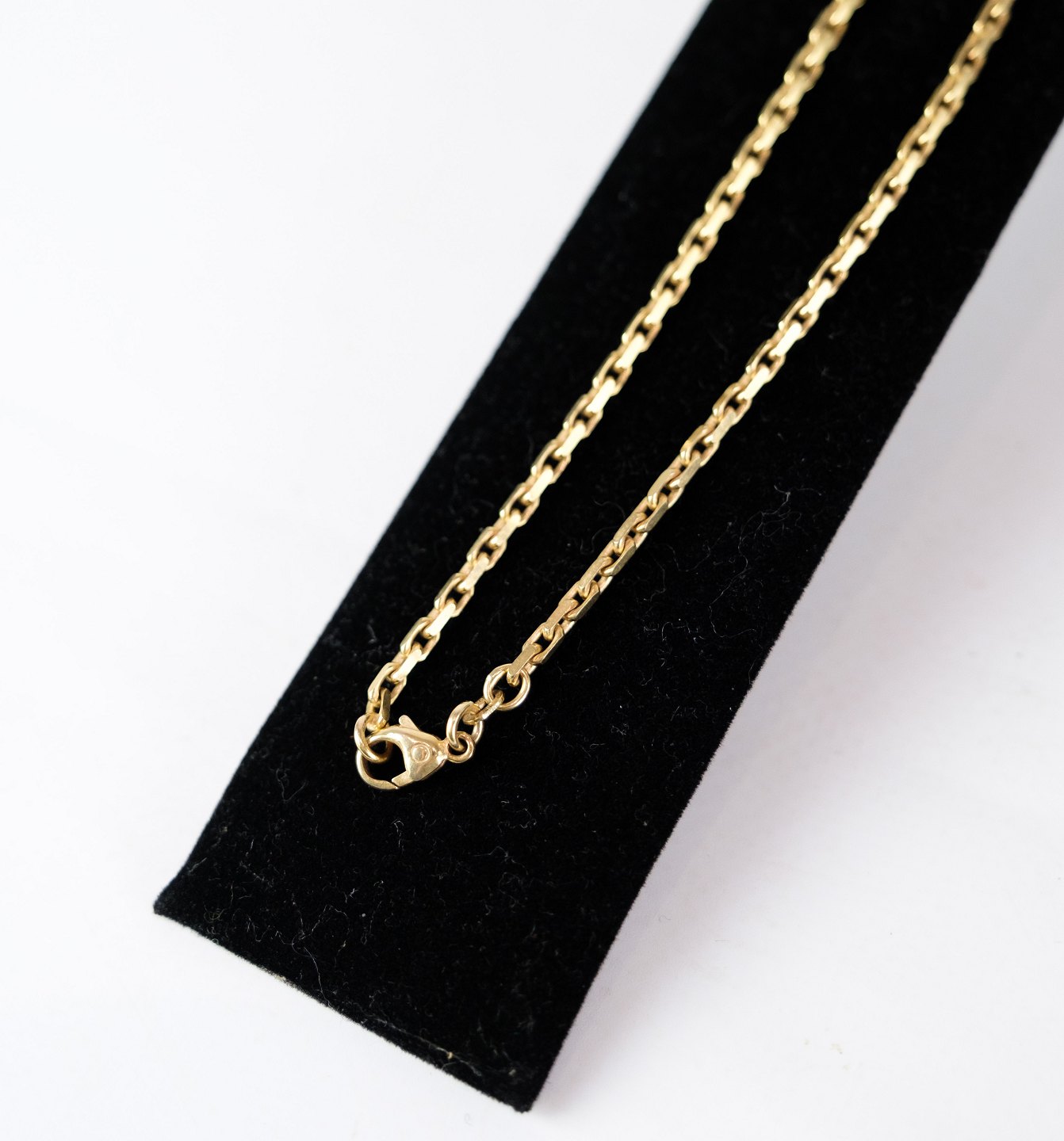 Anker facet halskæde i 14 karat guld, stemplet 585 med en kabinlås.