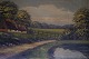 Maleri på lærredet i guldramme af landskabs motiv med bondehus fra omkring 1930'erne. Signerede V. Pedersen
