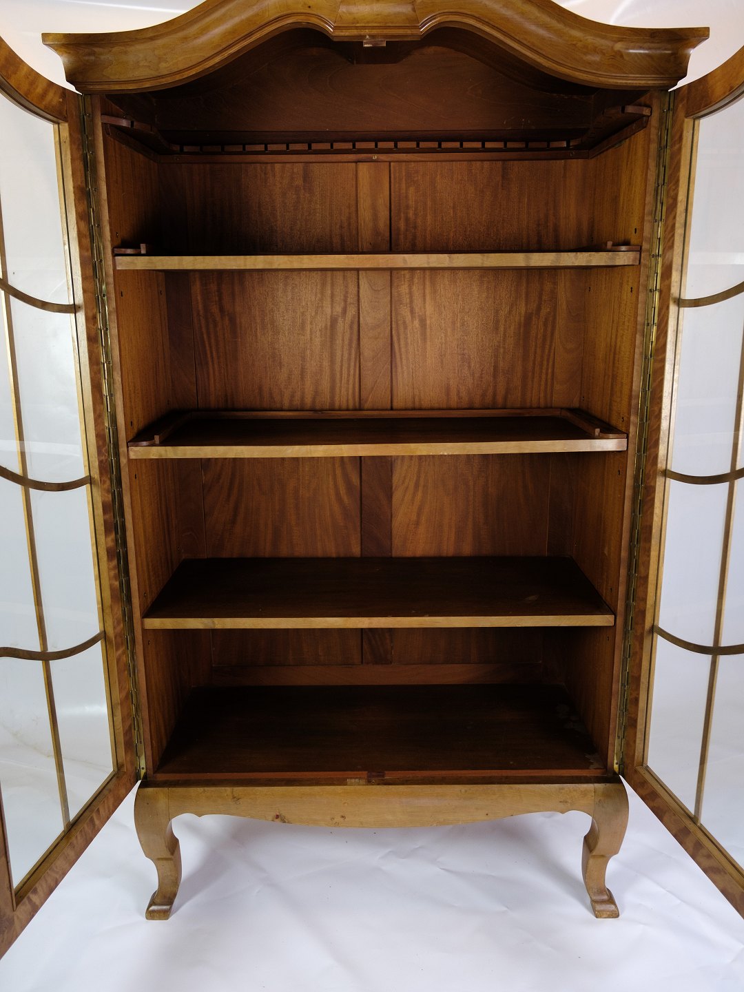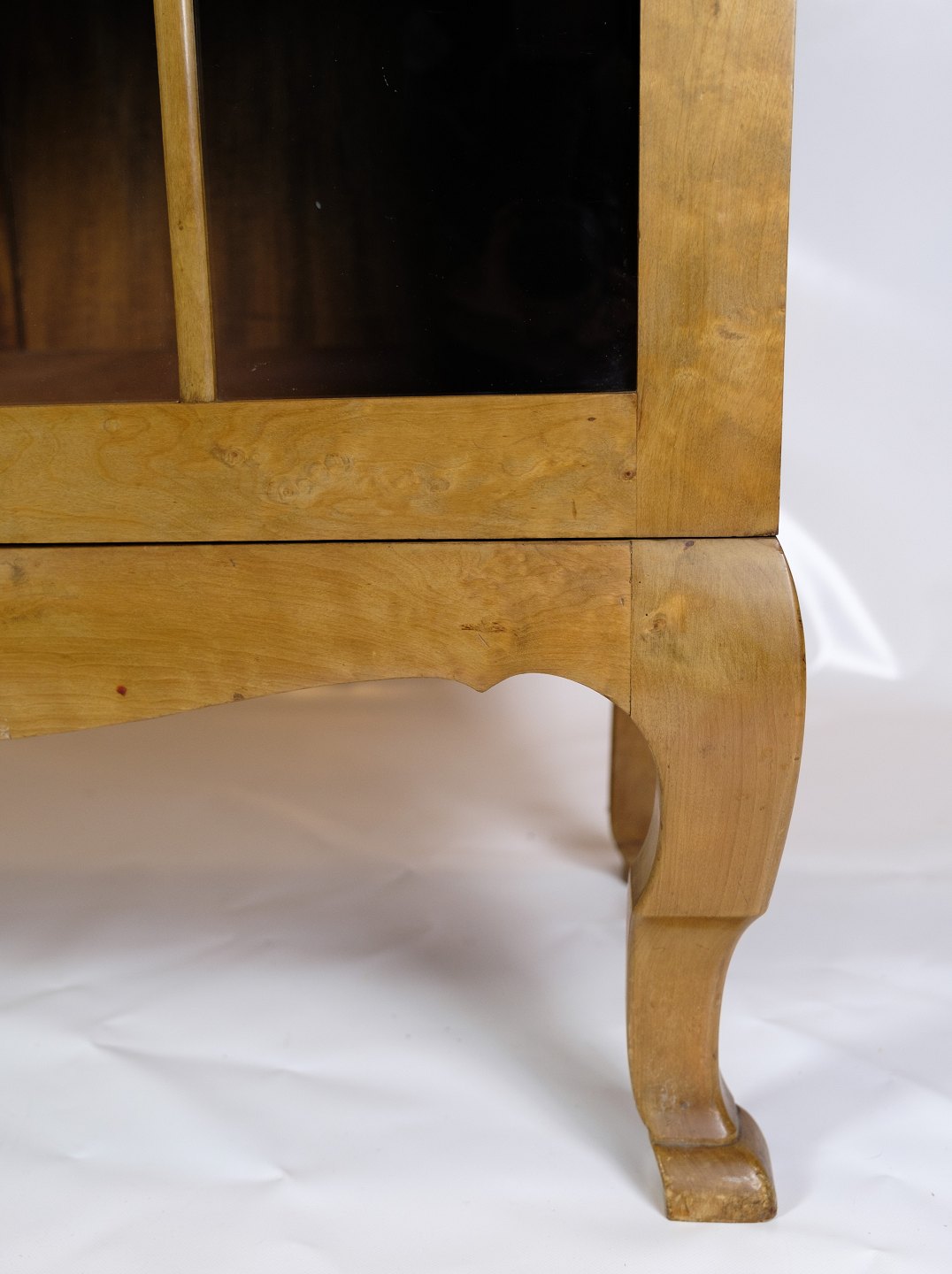 Vitrineskab af birketræ med 3 hylder og glasruder fra omkring år 1920'erne.