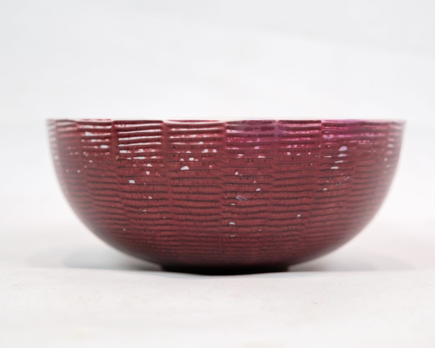 Keramikskål, model 20.717, med okseblodsfarvet glasur, designet af Axel Salto for Royal Copenhagen. Skålen er et klassisk eksempel på Salto's eksperimenterende tilgang til keramik, hvor han brugte mange forskellige glasurer for at skabe dybe og rige farvetoner.