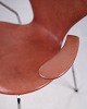 Arne Jacobsen Syverstol med armlæn, model 3207. Cognacfarvet læder og kromstel. Fritz Hansen designklassiker.