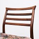 Sæt af seks Erling Torvits spisebordsstole fra 1960’erne. Palisander med blomstret sæde. Sorø Møbelfabrik.