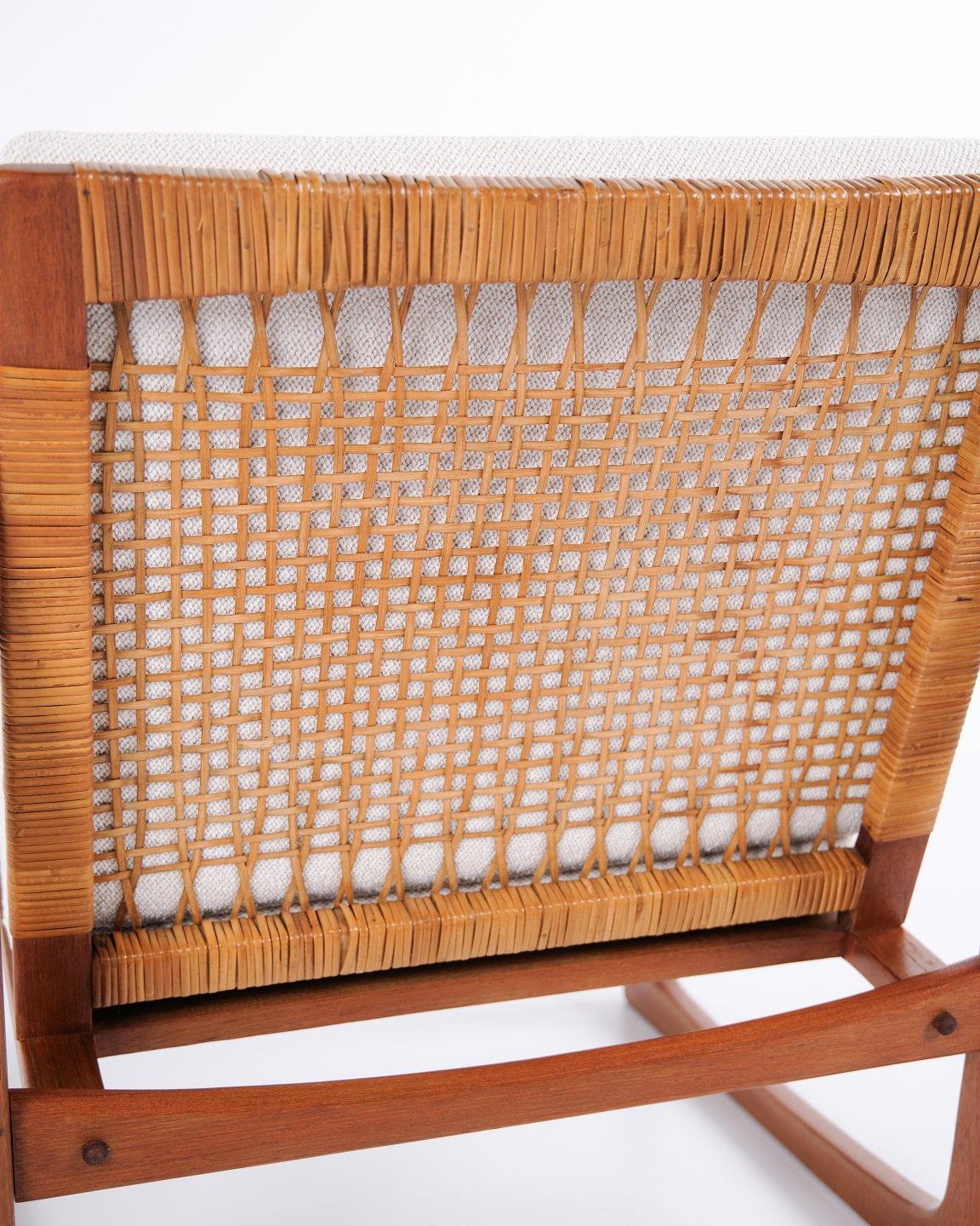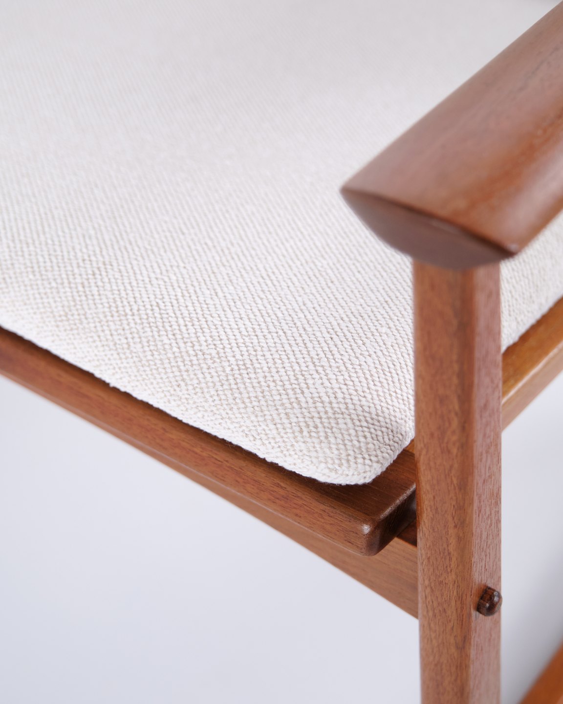 — Materiale: Teaktræ og lyst stof