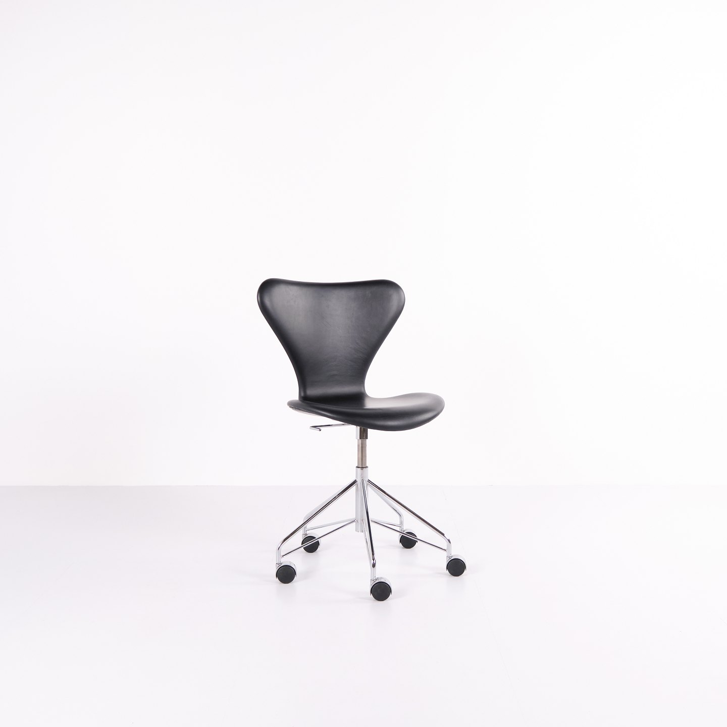 Syver Office chair - Model 3117 - Black leather - Swivel function - Arne Jacobsen - Fritz Hansen