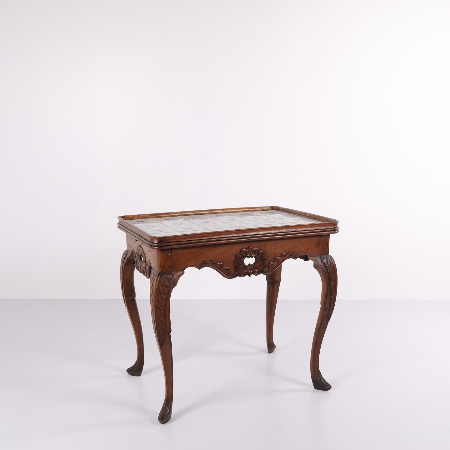 Kontakt os vedrørende prisAntikt Flisebord - Patineret Egetræ - Rokoko Stil - Hollandske fliser - 1780