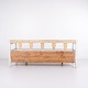Antik slagbænk fra 1860’erne i gråmalet fyrretræ. Klassisk almuedesign med siddeplads og opbevaring. Historisk og funktionelt møbel.