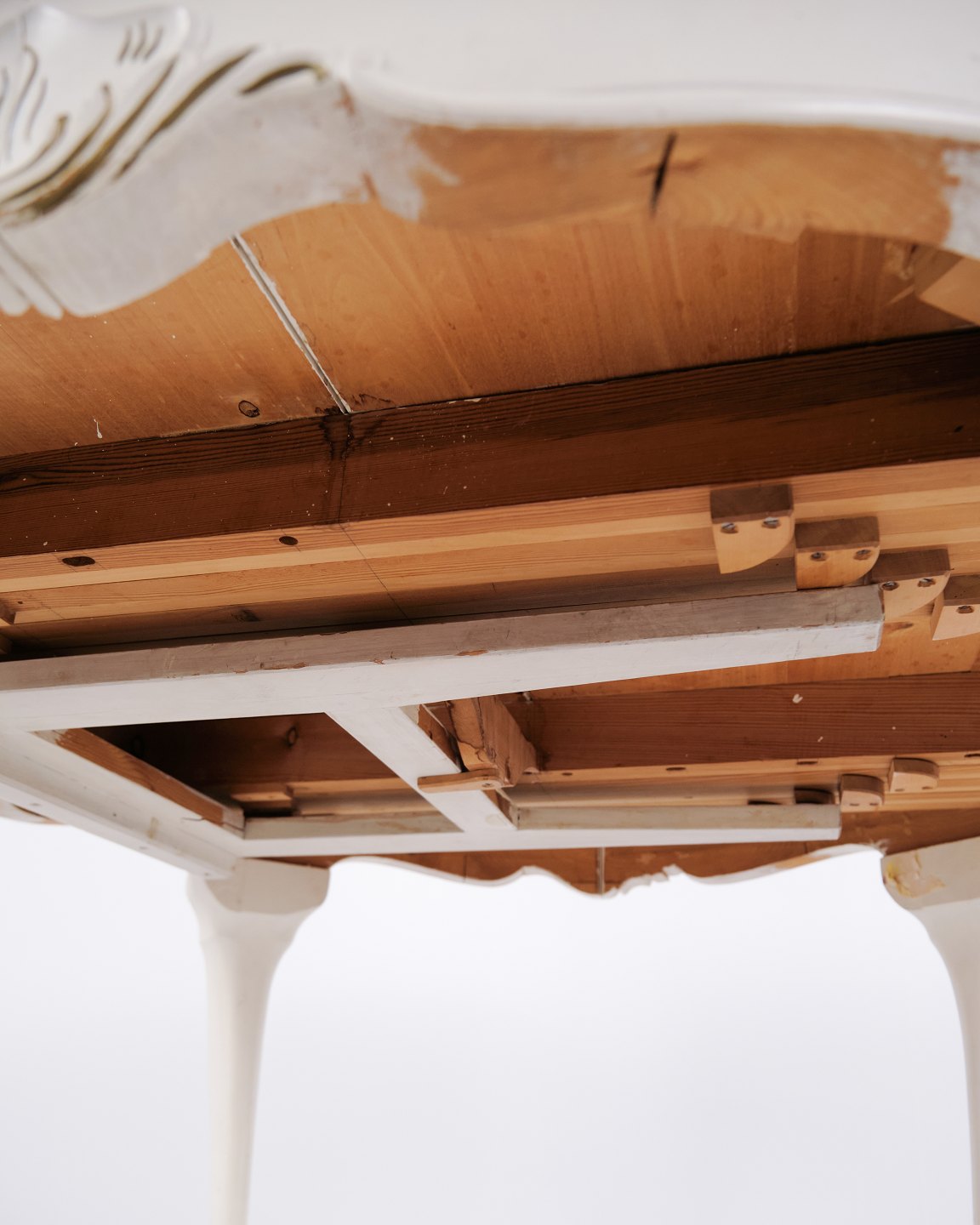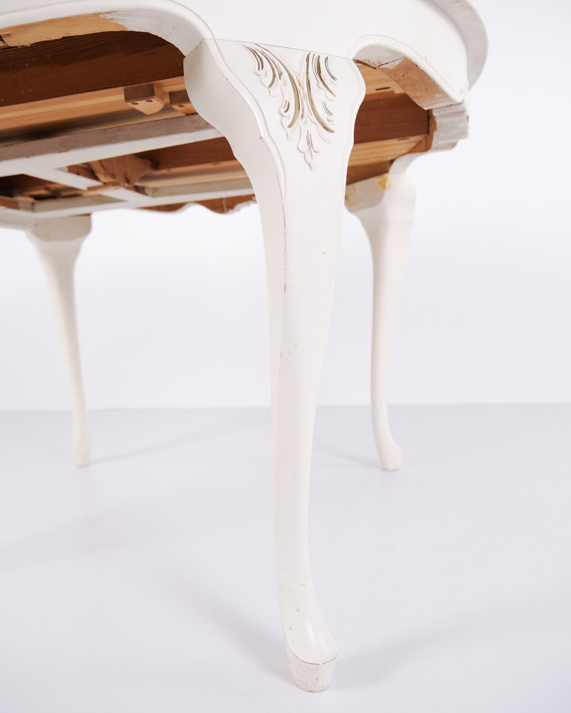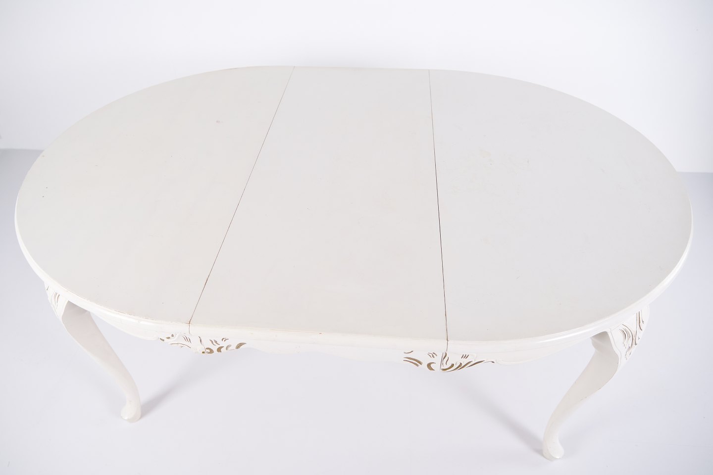 Antikt rundt spisebord i ny rokoko stil fra 1920’erne. Hvidmalet med dekorative detaljer og 4 tillægsplader.