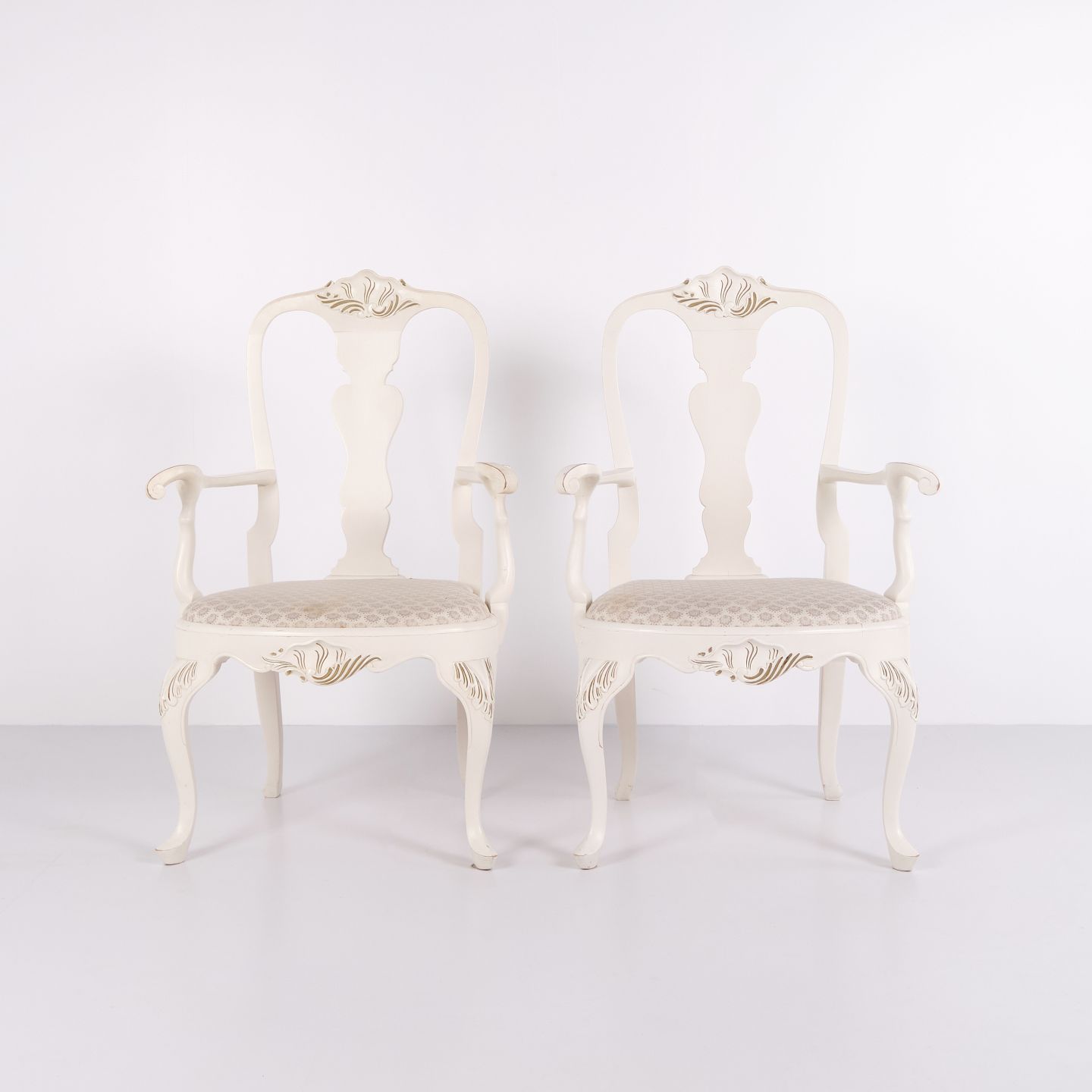 Et Par Armstole – Ny Rokoko Stil - Hvidmalet Med Dekorative Detaljer – År 1920’erne