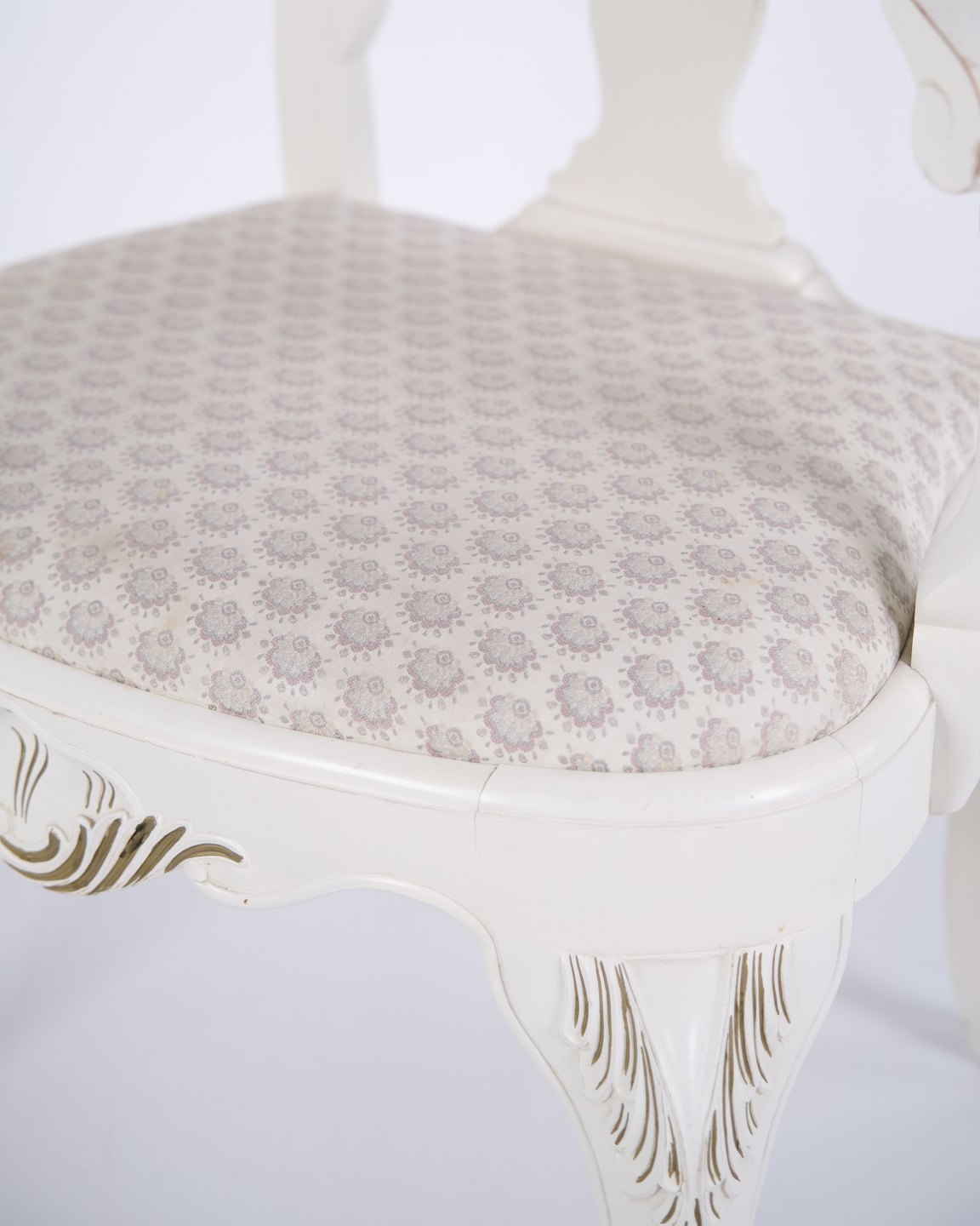 Antikke armstole fra 1920’erne i ny rokoko stil. Sæt af 2 hvidmalede armstole med dekorative detaljer. Antik rokoko møbelstil 1920’erne.