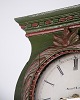 Bornholmerur frøkenmodel 1860’erne, håndmalet med udskårne detaljer i grøn/rød bemaling. Antikt bornholmer ur 1800-tallet.