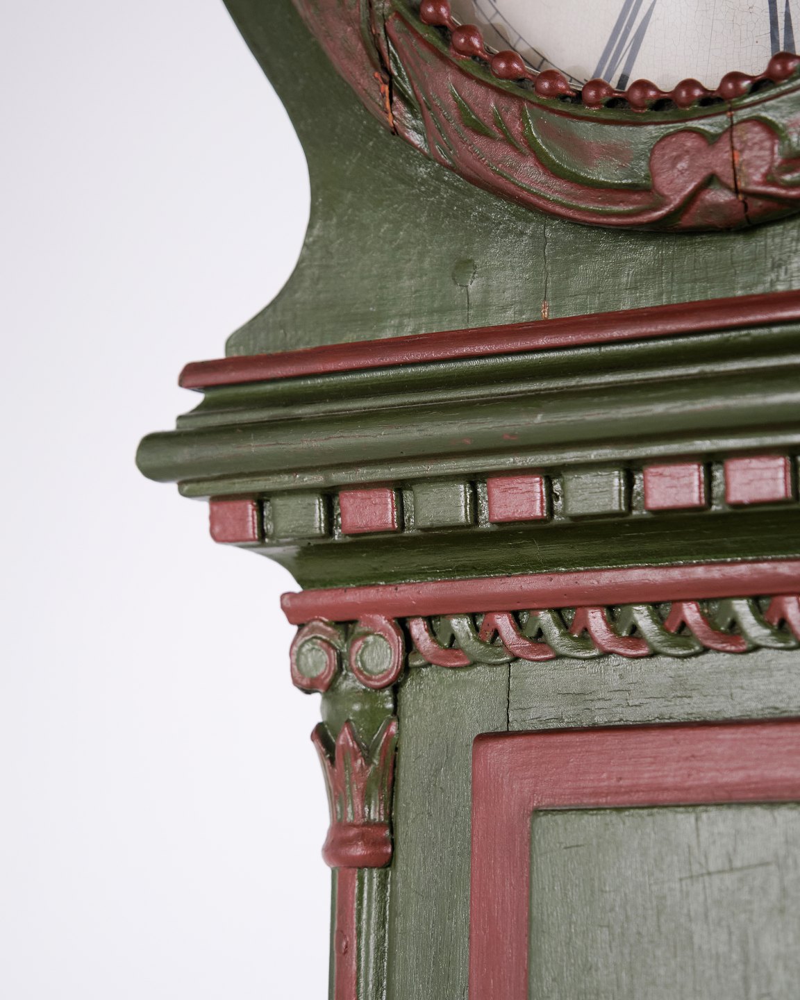Bornholmerur – Frøkenmodel - Håndmalet Med Udskårne Detaljer – Grøn & Rød Bemaling – År 1860’erne