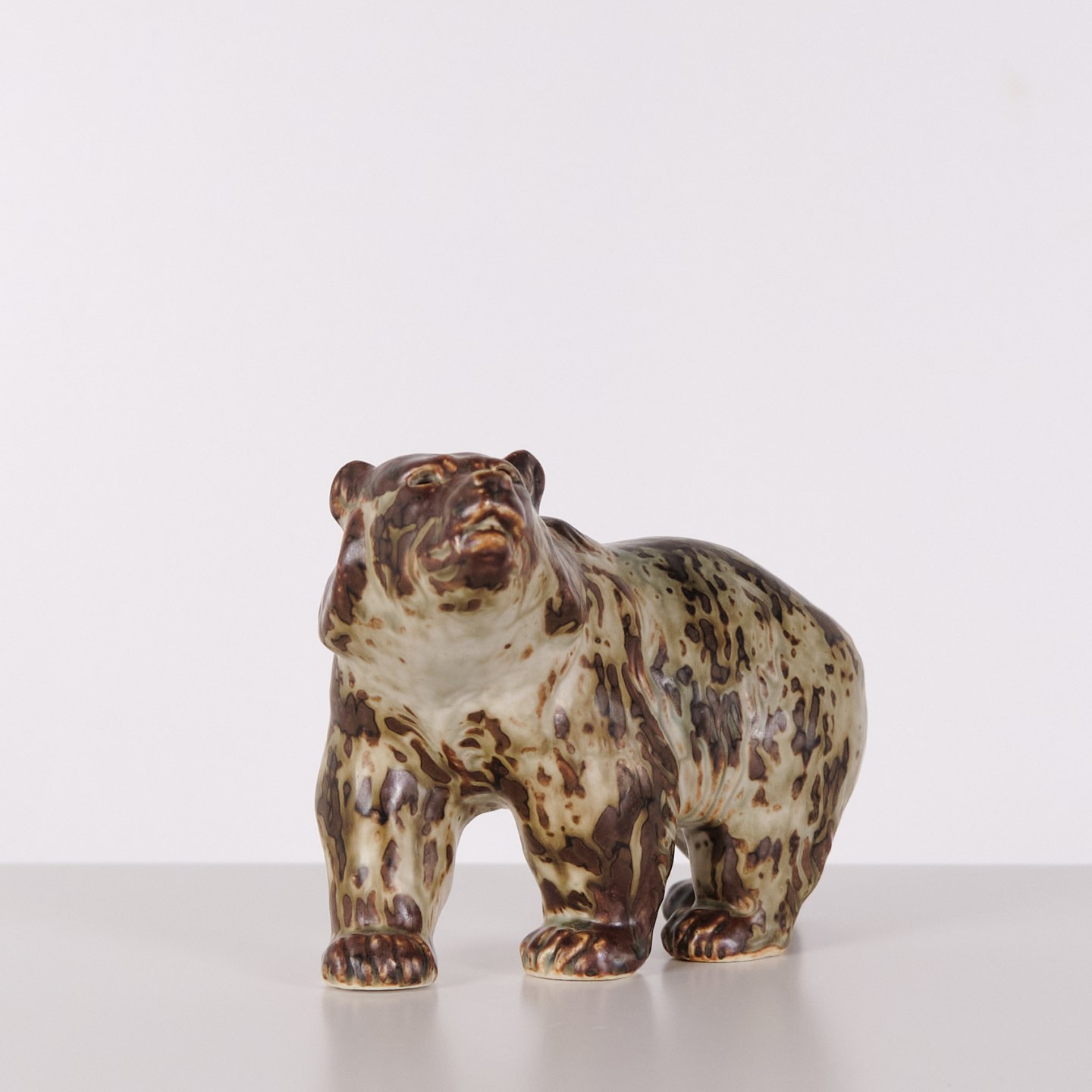 Keramikfigur med motiv af bjørn, model 20155, designet af Knud Kyhn for Royal Copenhagen. Figuren er udført i stentøj og produceret hos Royal Copenhagen omkring 1960. Modellen er en del af Kyhns omfattende arbejde med dyrefigurer, kendetegnet ved tydelig form og fokus på dyrets kropsvolumen. Et klassisk eksempel på dansk keramisk design fra midten af det 20. århundrede.