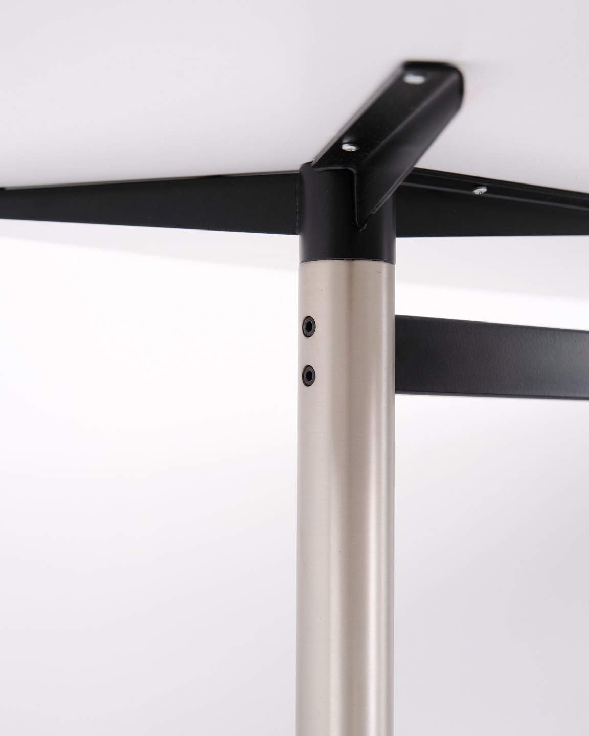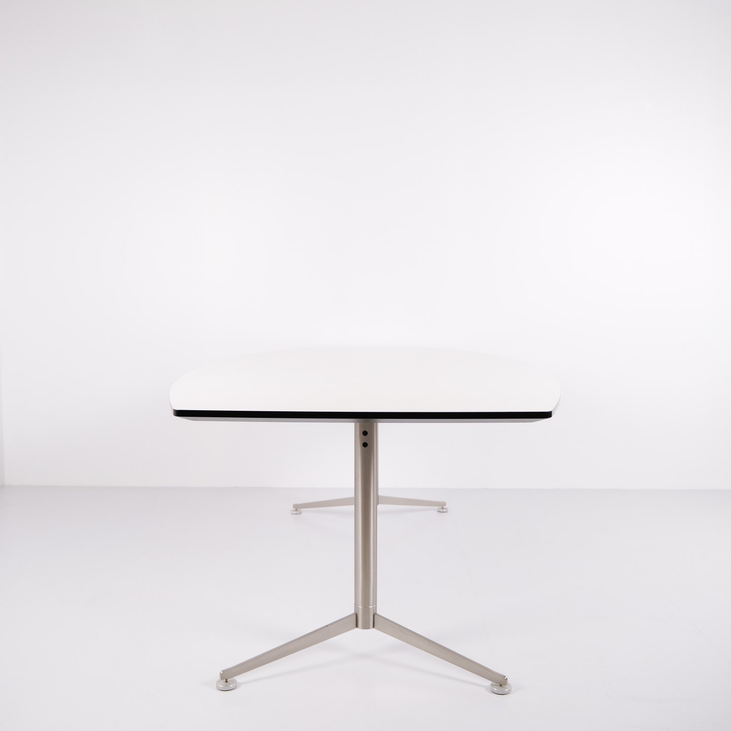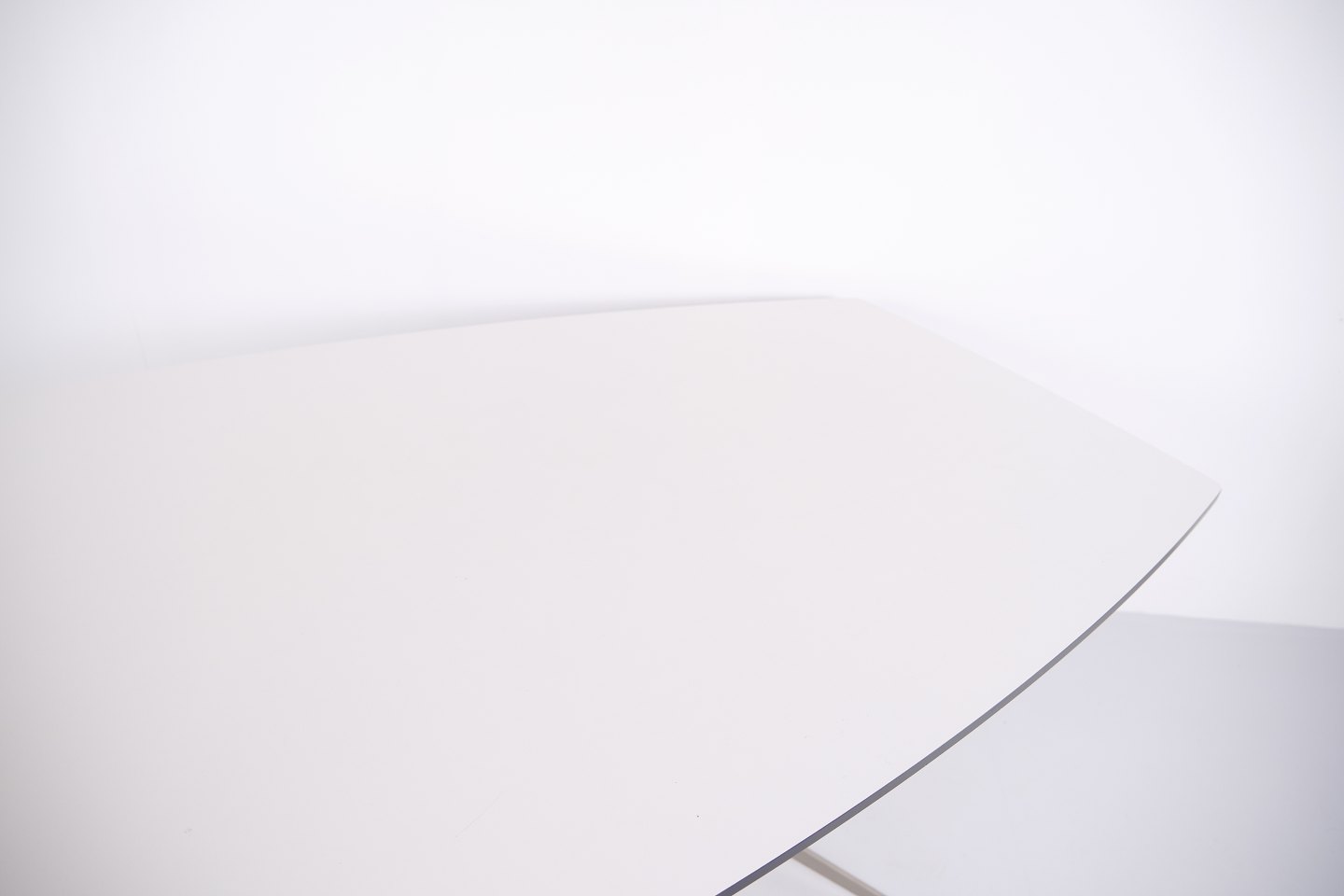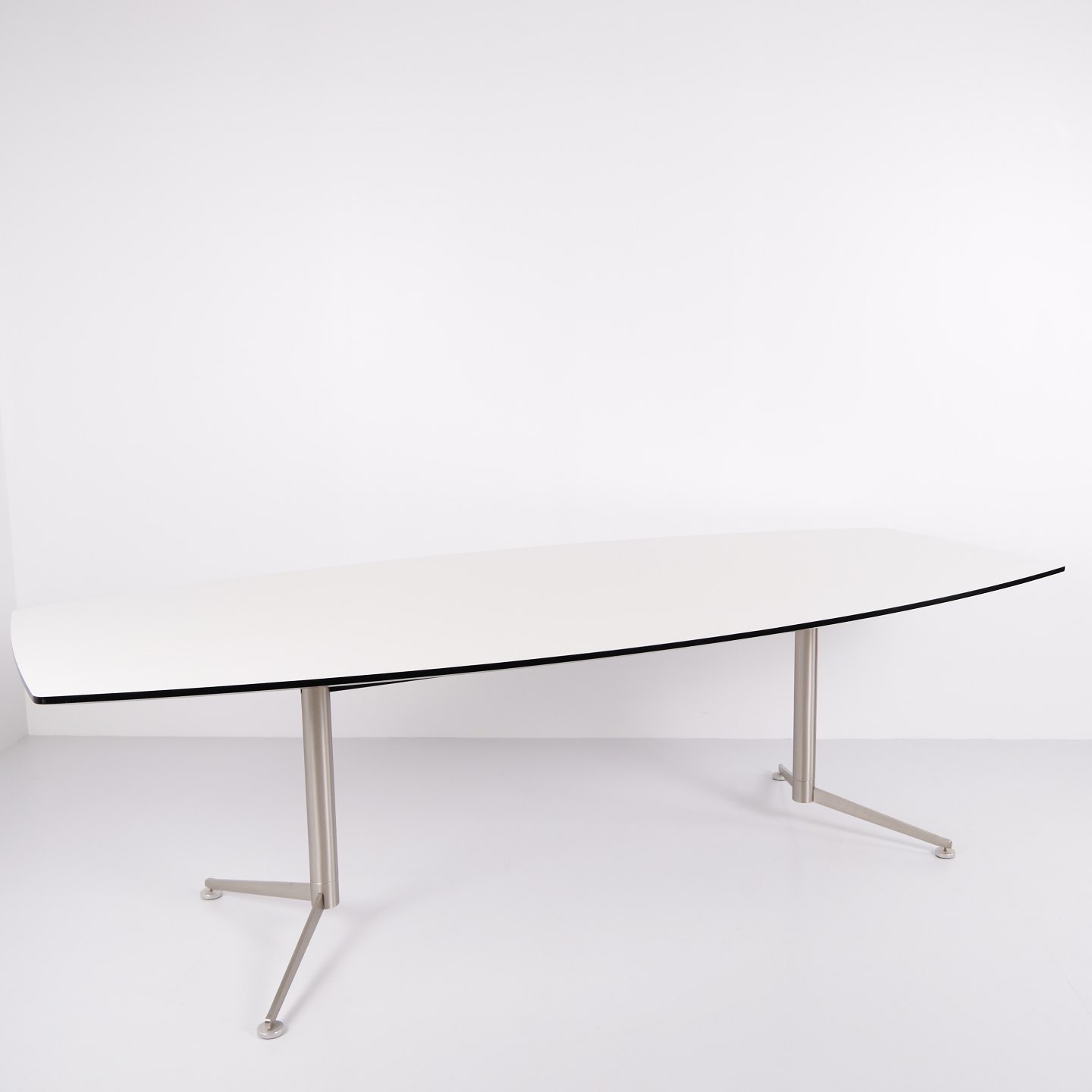 Paustian konferencebord model SP64 Spinal i hvid laminat med stel i børstet stål. Dansk design med funktionelt og moderne udtryk.